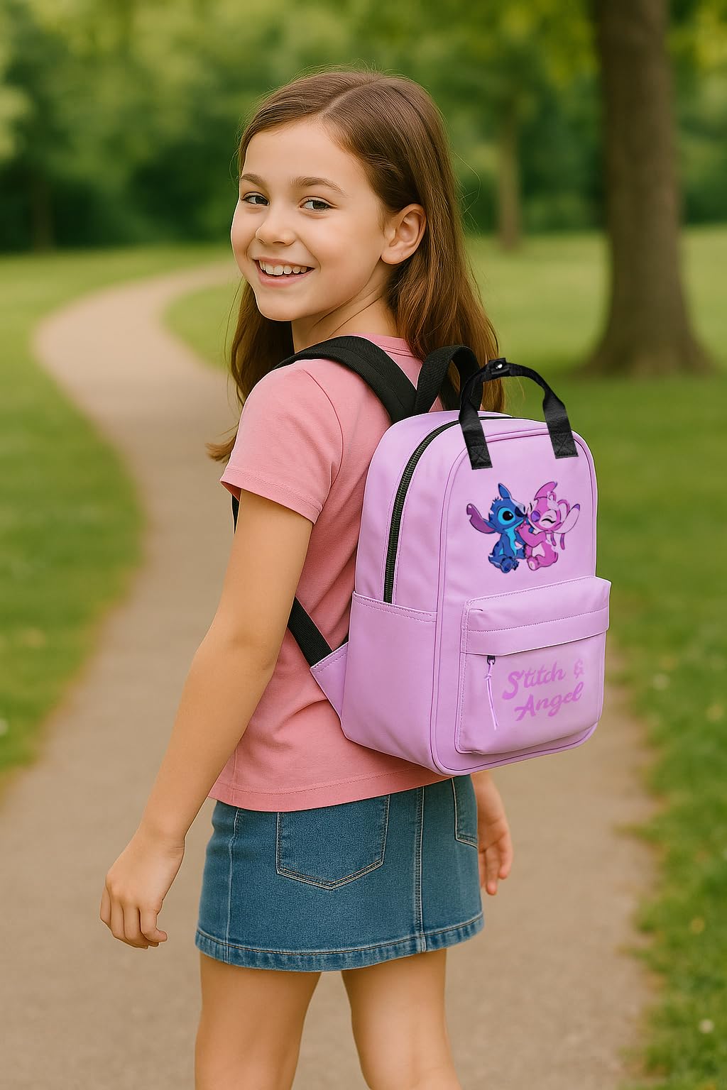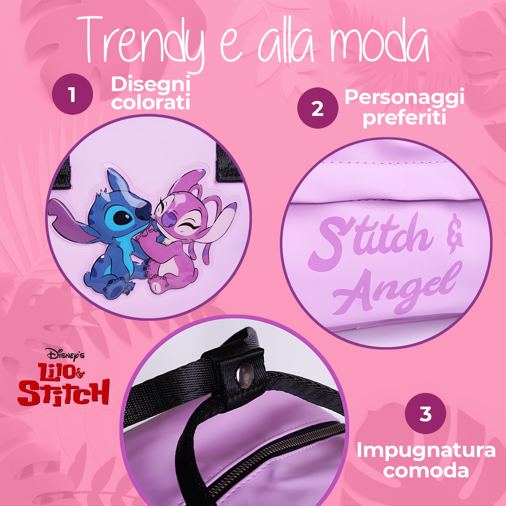 Disney Borsa Stitch & Angel per Bambina – Borsetta Manici – Regalo per Ragazze – Accessorio Lilo & Stitch – Leggera e Resistente per Scuola o Tempo Libero