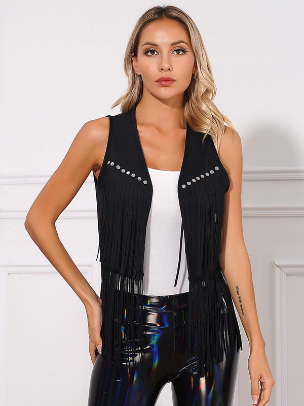 The flowy tassels swing gently with the footsteps, and some rivets on the chest, make you attractive and cool.