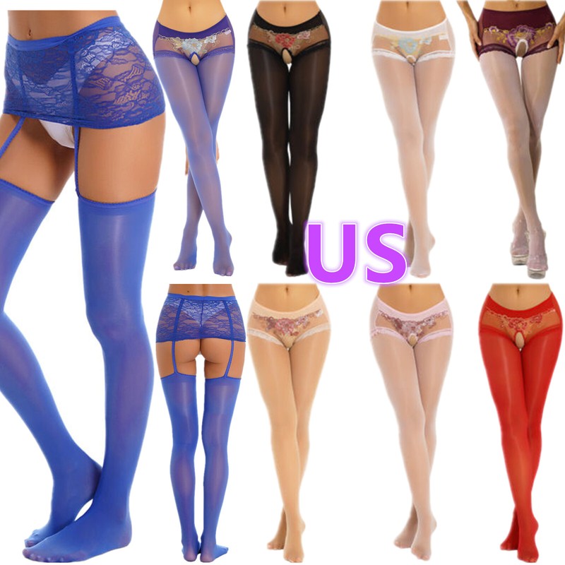 Womens Hollow Out Stockings Leggings Mid Waist Cutout Crotchless Pantyhose.