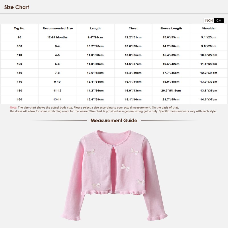 Long sleeve solid color bowknot embellished knit cardigan, sweet and sophisticated, making it a valuable addition to your child’s closet.