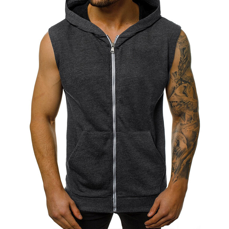 Men's Sleeveless Hoodie Tank Top for Gym Fitness Workout Muscle Zipper Vest