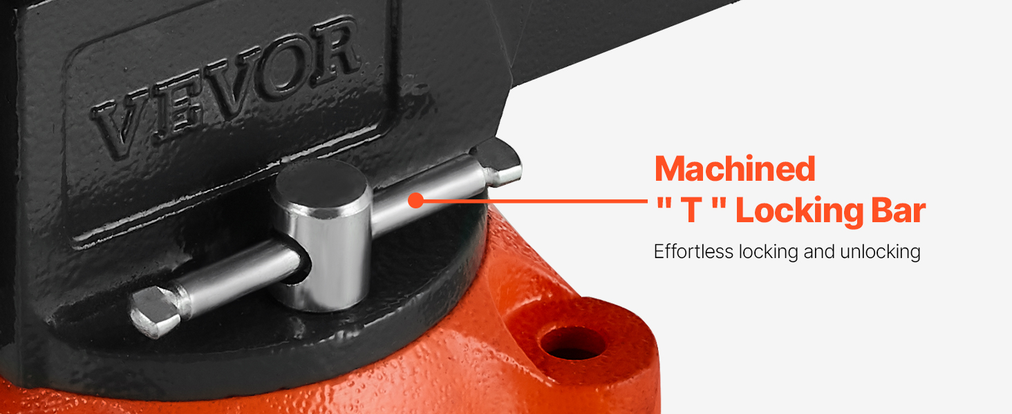 With the machined "T" locking bar, our rotating workbench vise lets you securely lock or release your workpiece in seconds. No more fumbling with tools or wasting time! Ideal for fast-paced projects where you need to switch between tasks quickly.