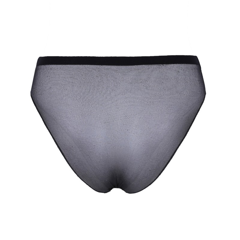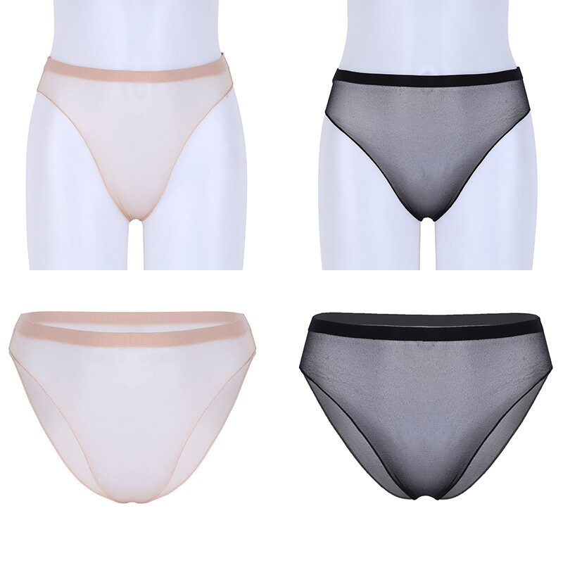 Glossy appearance, low rise with comfy elastic waistband, see throuth sheer design.