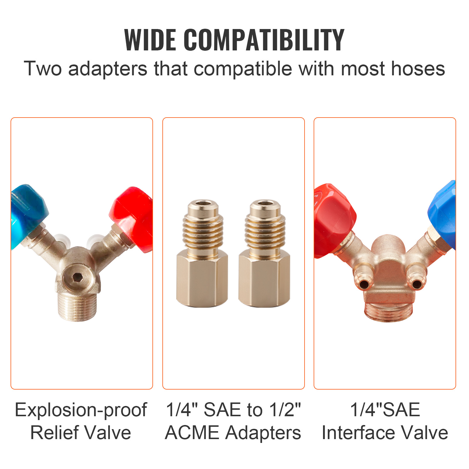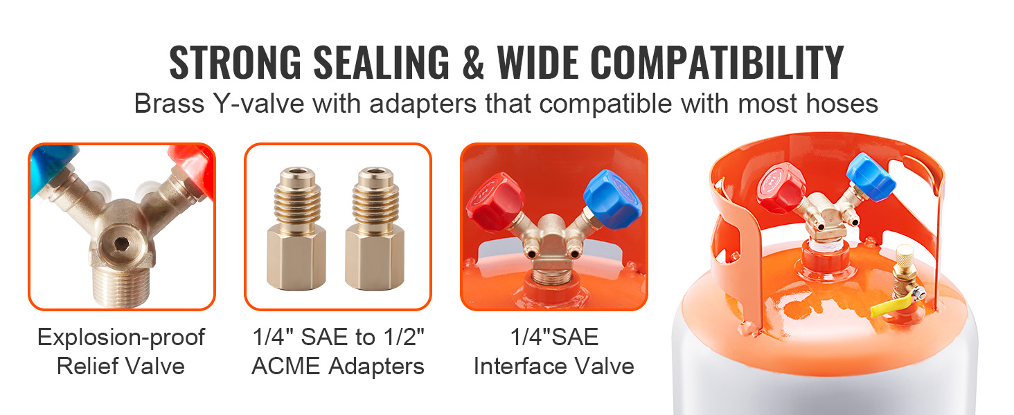 Equipped with a 1/4" SAE interface valve and two compatible adapters, our tank offers wide compatibility with most hoses. The Y-type valve is integrally formed, making it explosion-proof and leakage resistant. Rest assured that our tank provides a tight and secure seal.