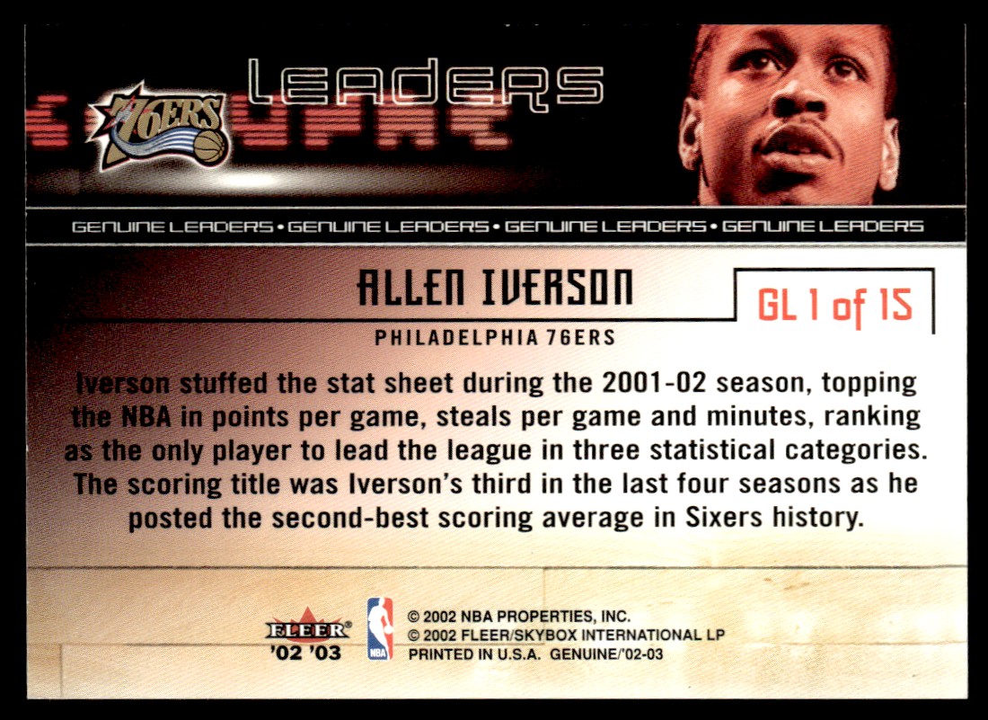 2002-03 Fleer Genuine Leaders Allen Iverson #1