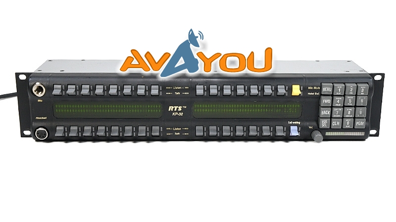 The RTS model KP-32 Classic keypanel fits in a standard 19 inch rack and is two rack spaces high. It has 32 lever keys: 30 keys are for intercom talk/listen assignment; one key is for call waiting response; and one key is for headset/microphone/program selection and volume setup. The KP-32 Classic combines all of the programmable features of the KP-12 keypanel. The KP-32 Classic features digital signal processing and binaural headset operation with left/right assignment of audio signals. It also has large, super-bright, long-life fluorescent displays with adjustable brightness control, making it suitable for all types of ambient lighting.