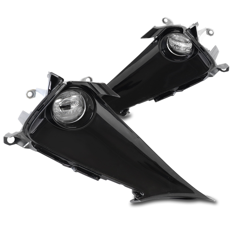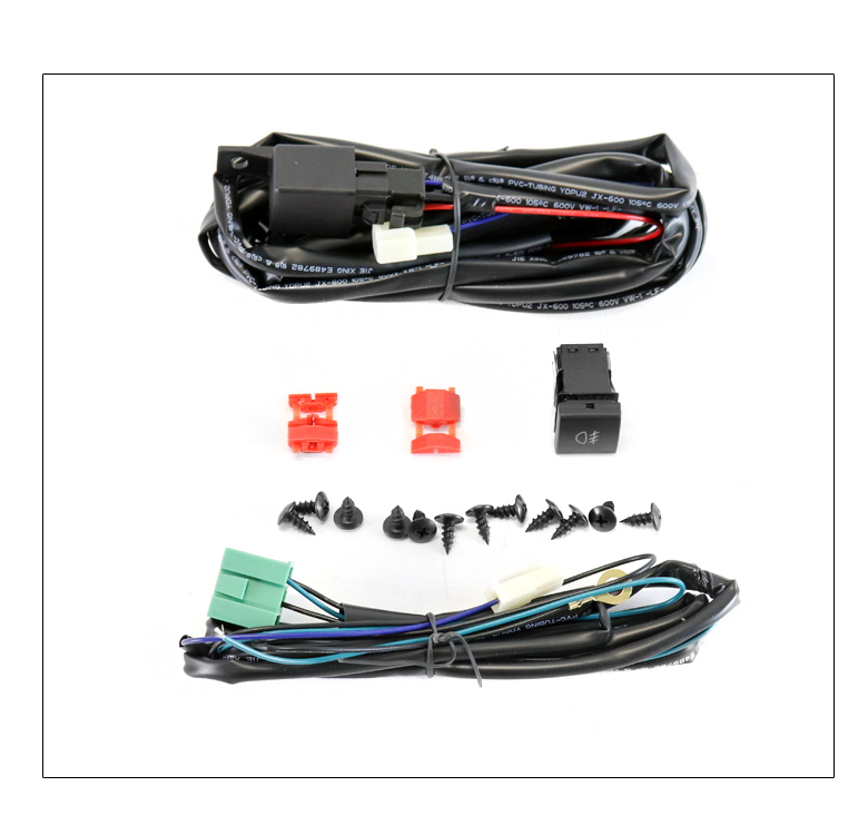 A pair of fog lights (driver and passenger side), wiring harness, and switch