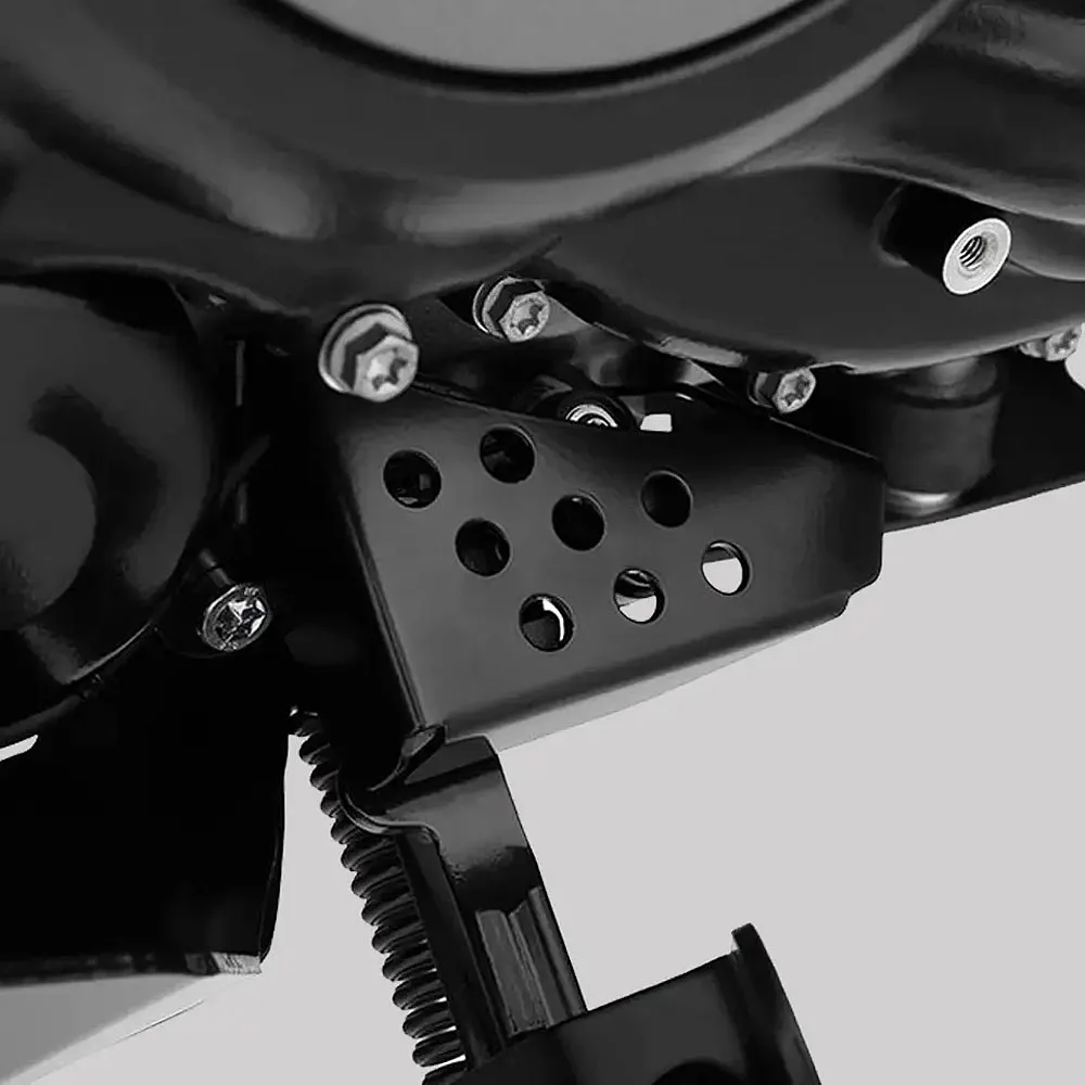 · It therefore makes sense to properly protect this exposed switch against damage from stone impacts or falls. After all, if the switch is damaged, the engine will no longer start. The high level of protection is ensured by the stiffness of the angular, partially pierced 2 mm aluminium plate.