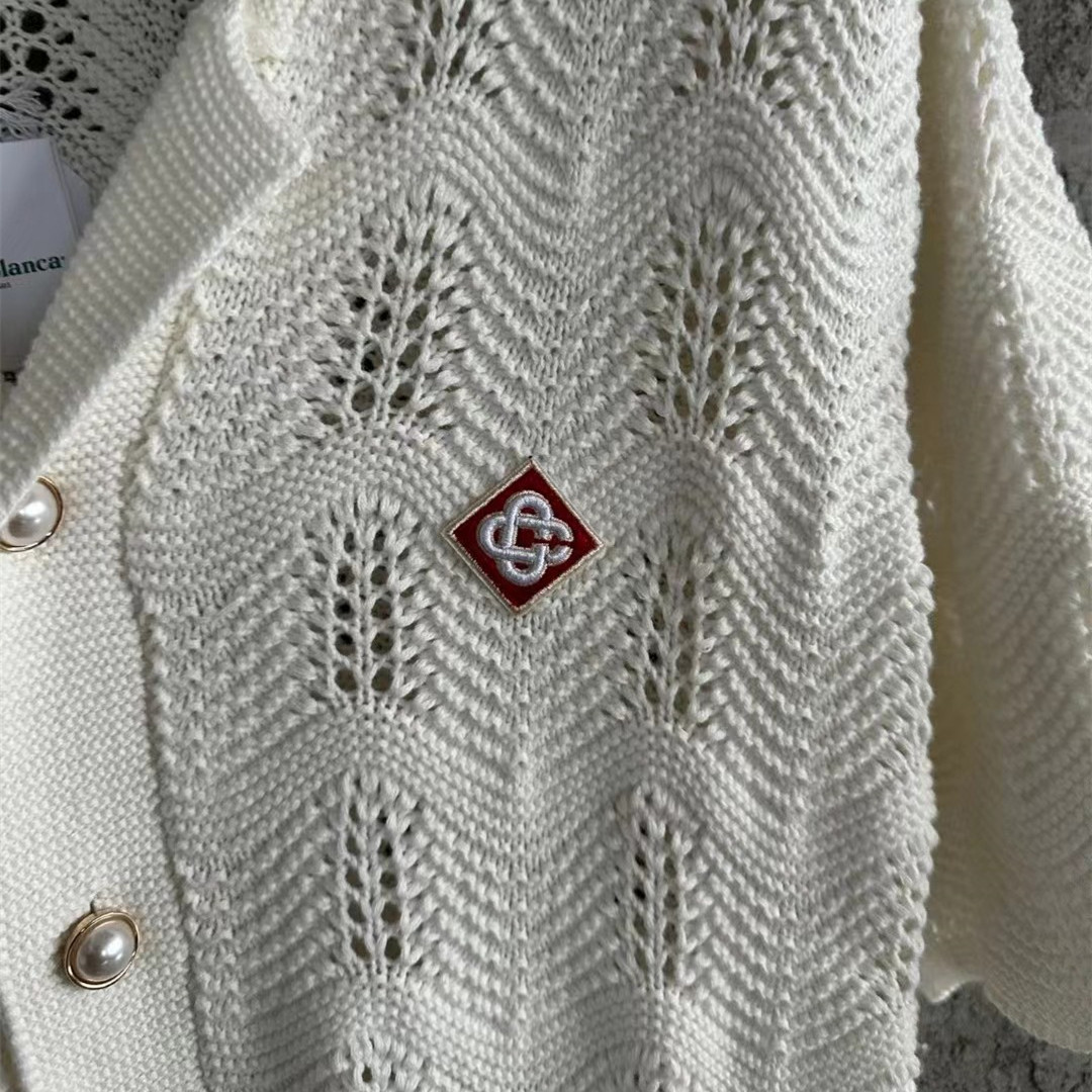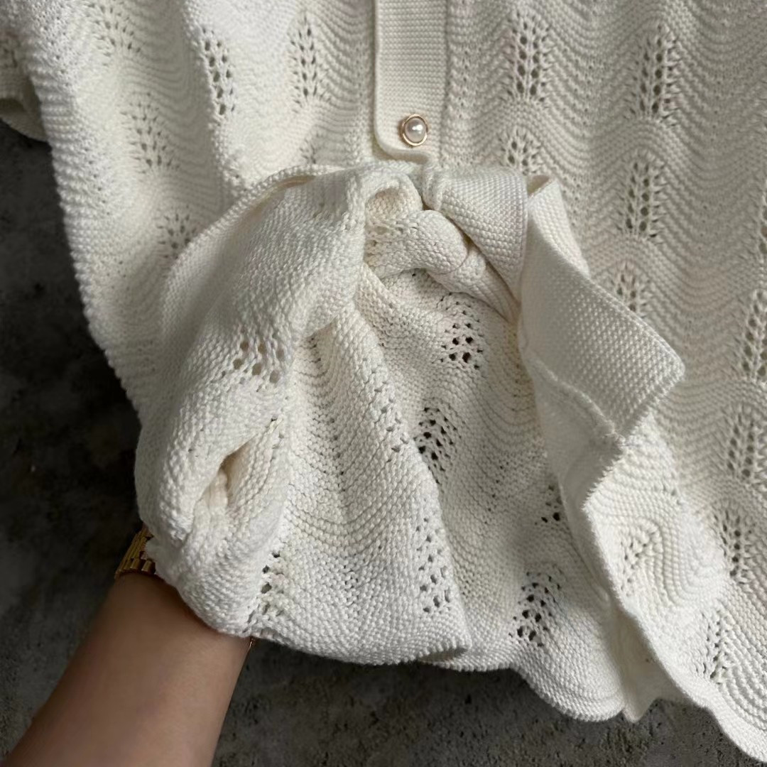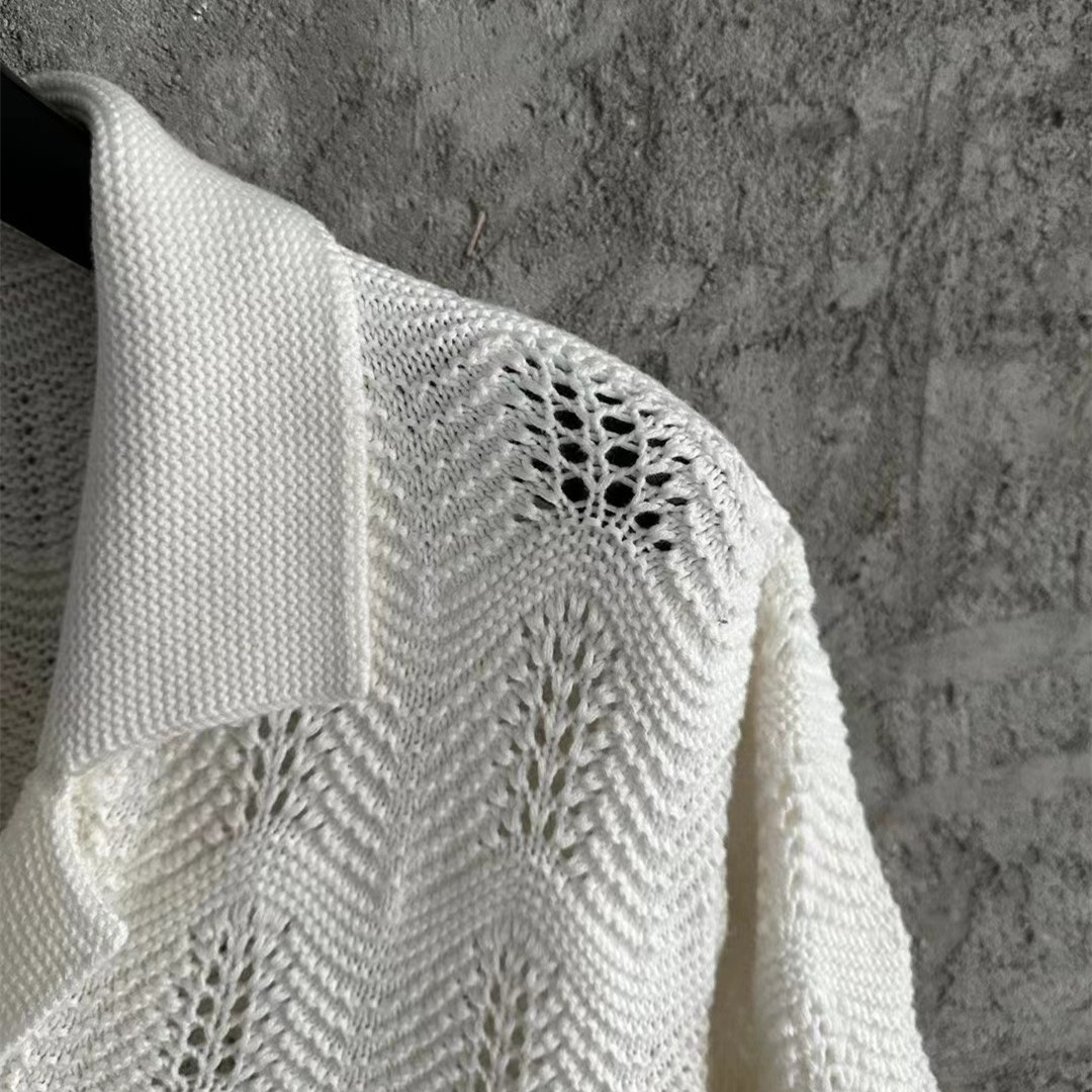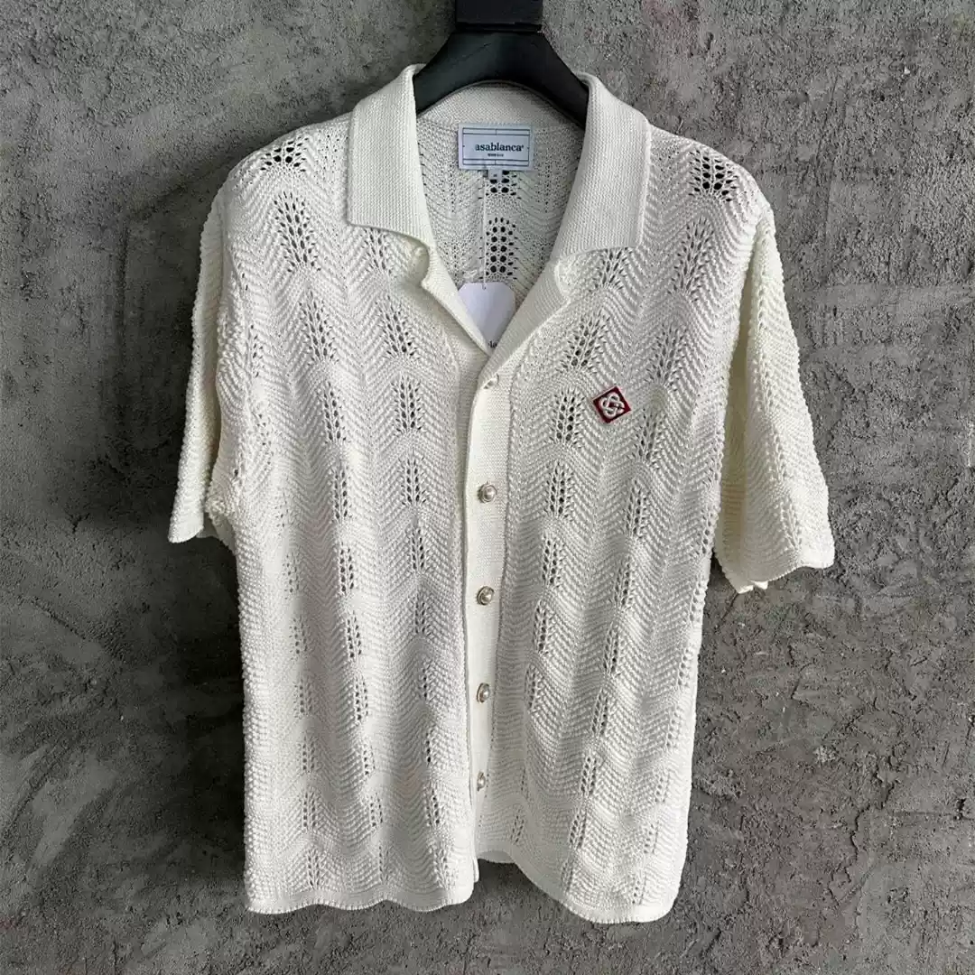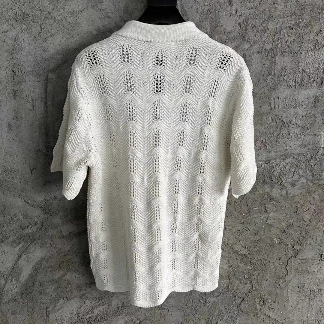 Casa/blanca White wavy pattern men's hollow knitted sweater short sleeved shirt