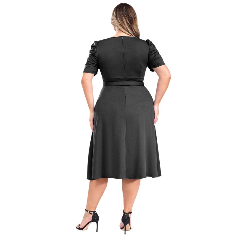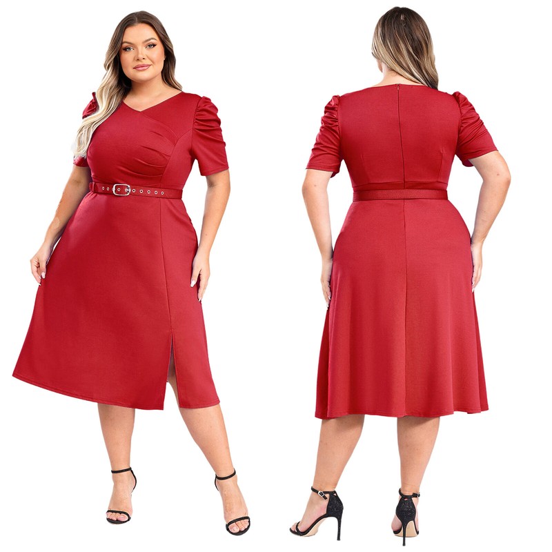 The ruched details on the sleeves and front of dress make you look beautiful and elegant. Pair with a belt.