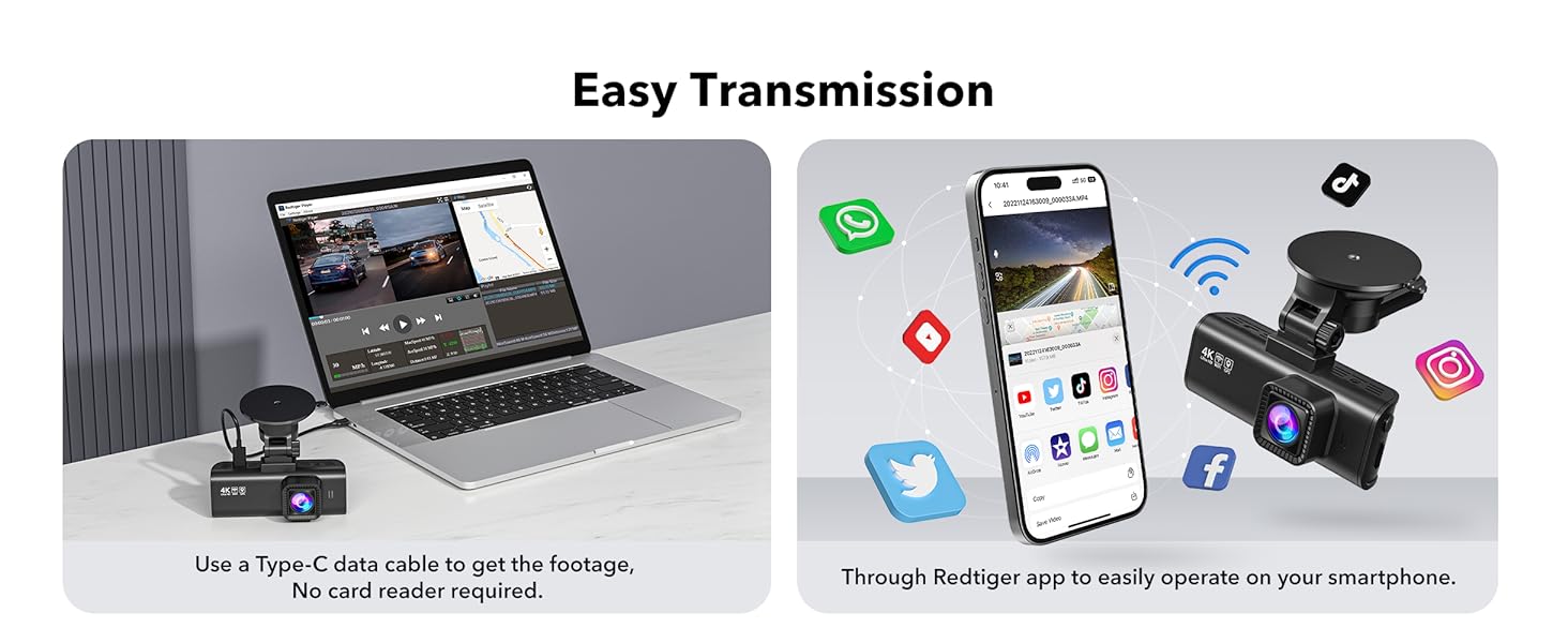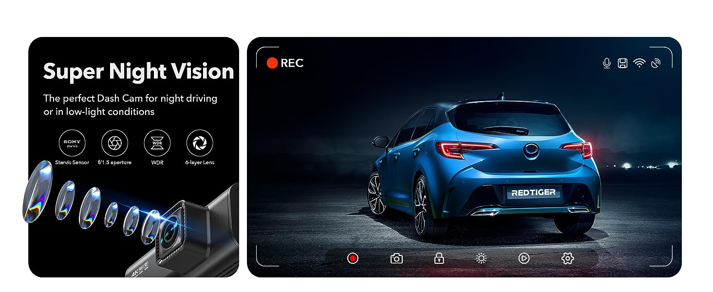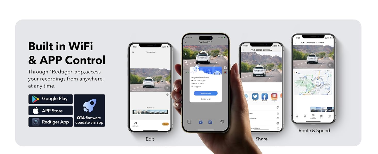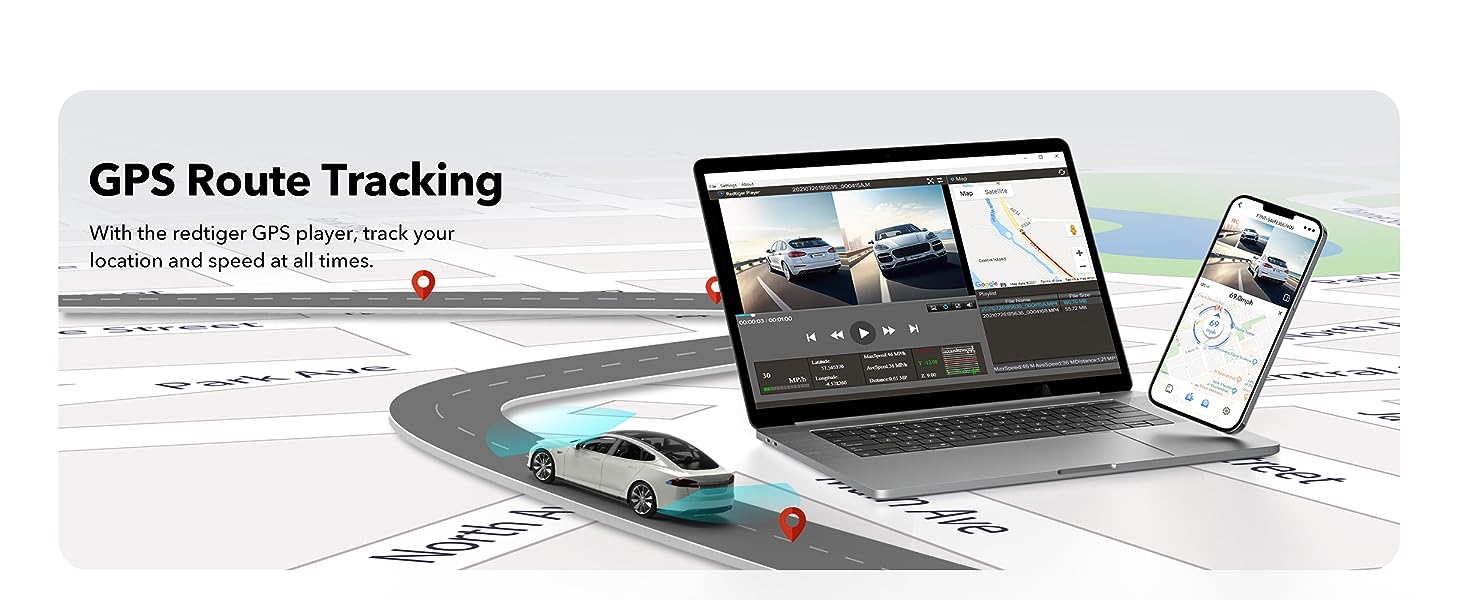 [Built-in GPS&WiFi] Both Android and IOS users can connect to wifi by downloading the redtiger app.Wth WiFi connectivity quickly access and playback your recorded videos on your mobile phone. Share your driving experiences in real-time with friends, family, or insurance companies. Car recorder built-in GPS provides accurate tracking of your vehicle's location, speed, and route.
