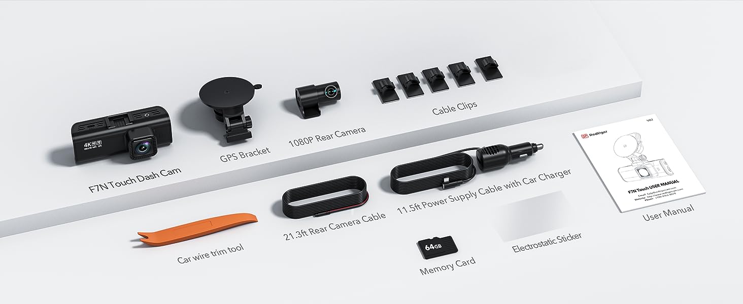 1 * F7N TOUCH 4K Dash Cam;1 * 1080P FHD Rear Cam