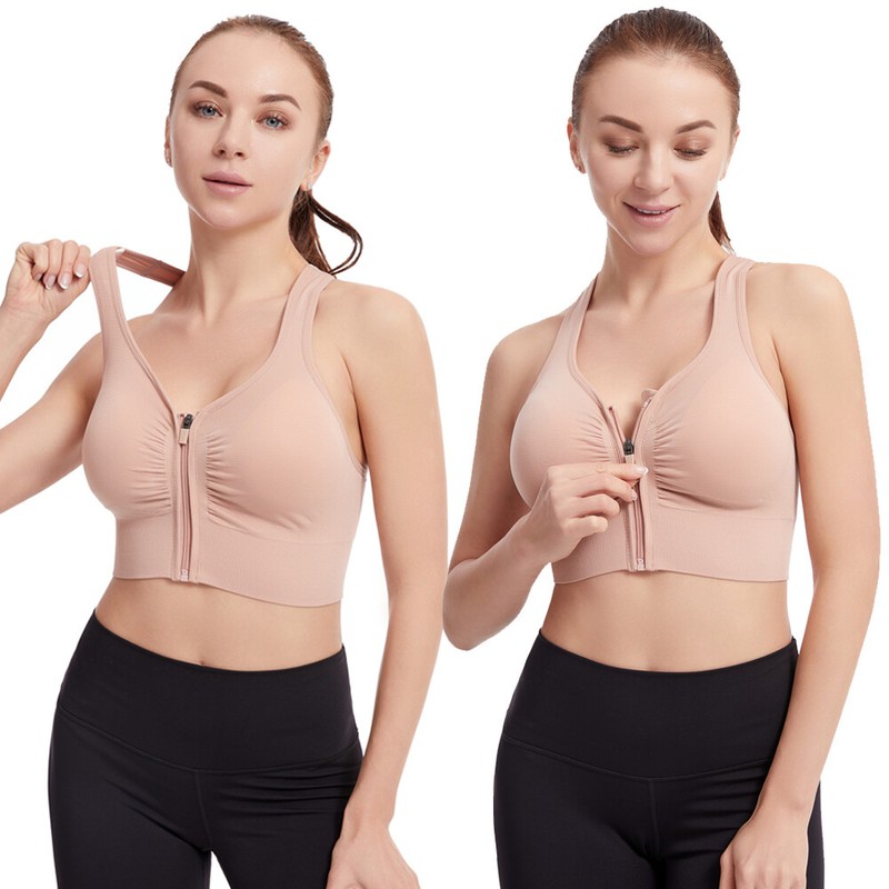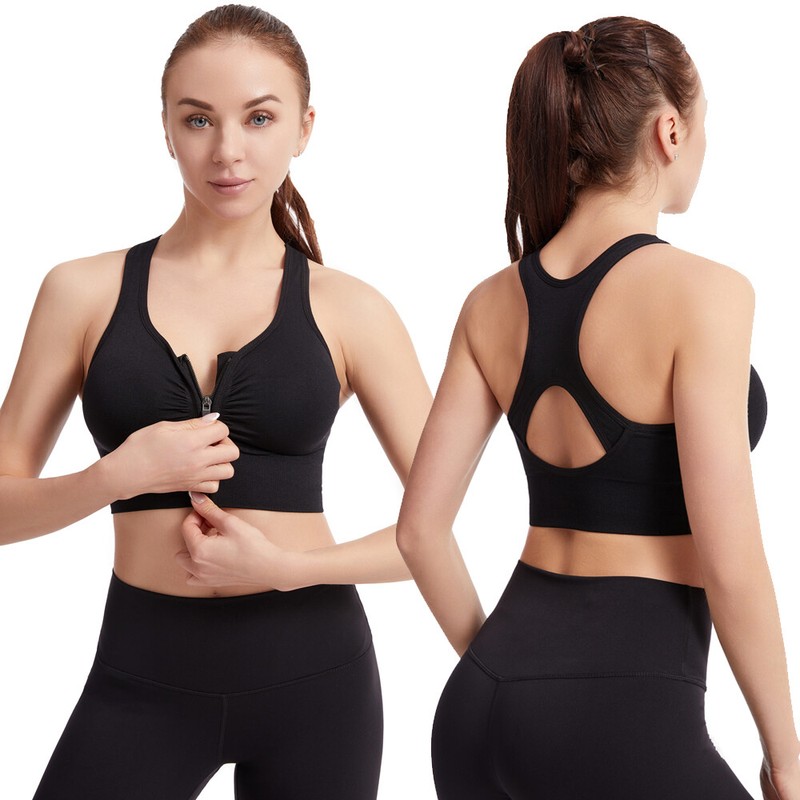 Womens Zipper Front Closure Padded Sports Bra Medium Support Racerback Yoga Bras