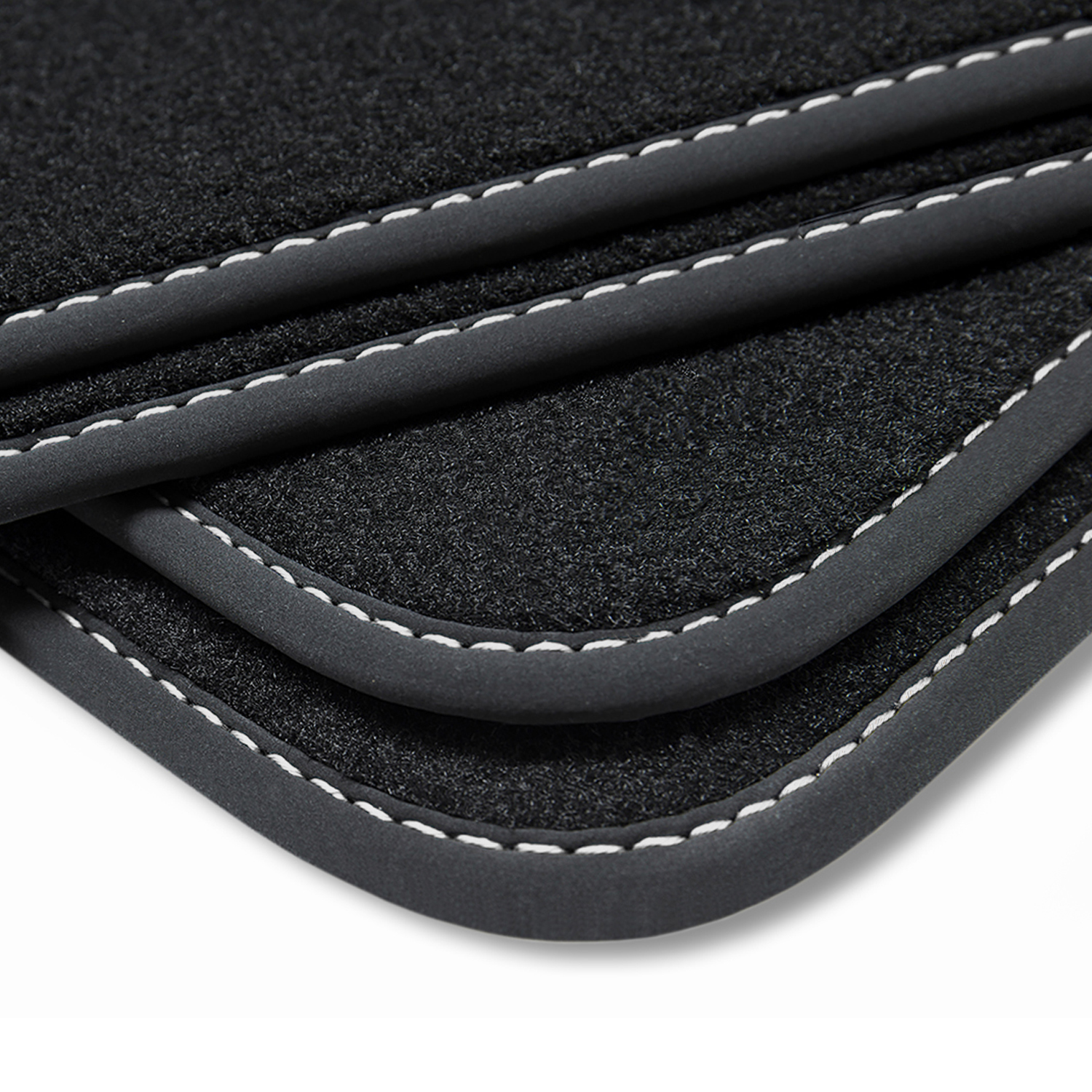 - Schwarze Fußmatten mit Bandeinfassung und Ziernähten