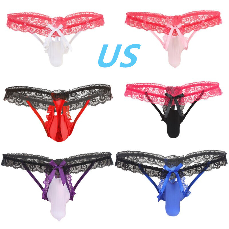 Men Sheer Lace Suspenders Sissy Lingerie Sleepwear Bowknot Elastic Waistband Garter Belt for Stockings.