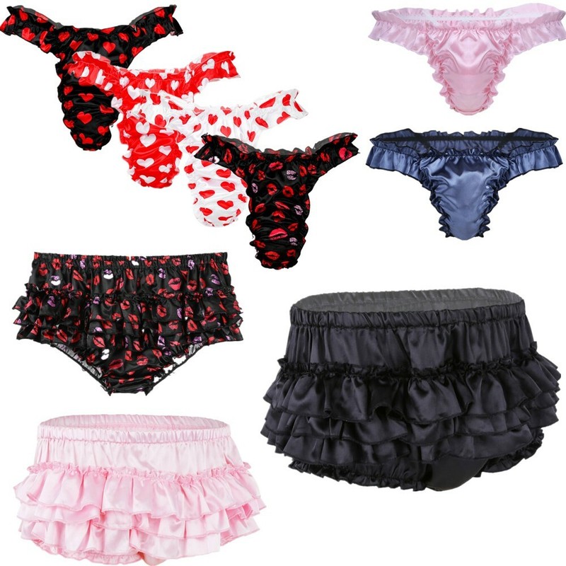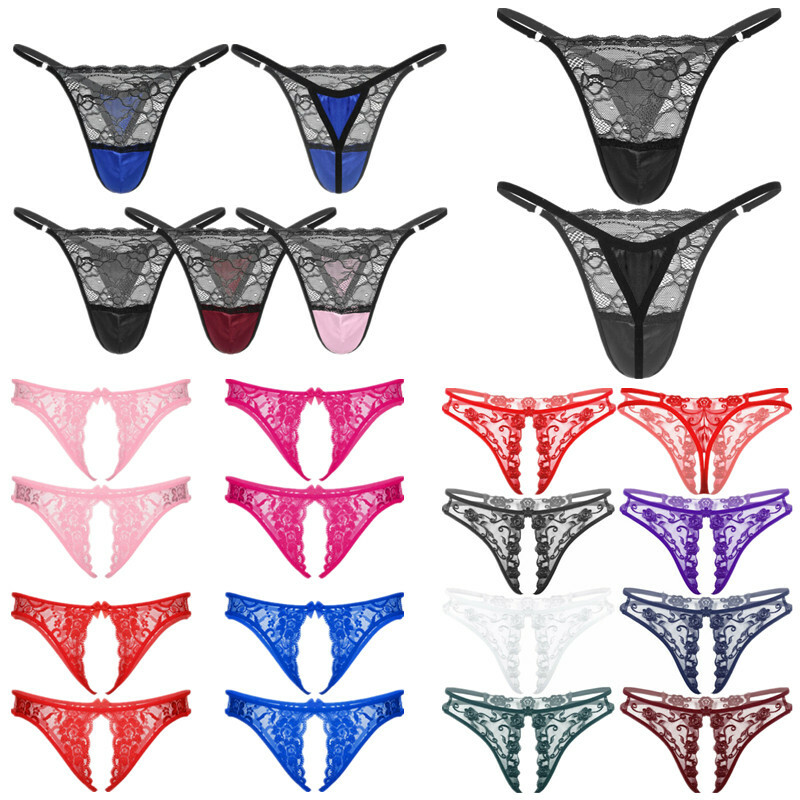 Men Sissy Satin Underwear Thong Lace Patchwork Panties G-string Briefs T-back.