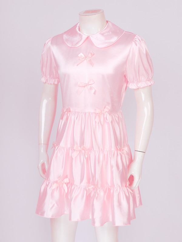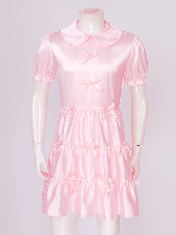 Mens Role Play Theme Party Sissy Costume Puff Sleeve Bowknot Ruffle Stain Dress.