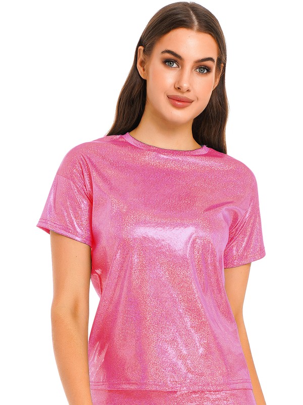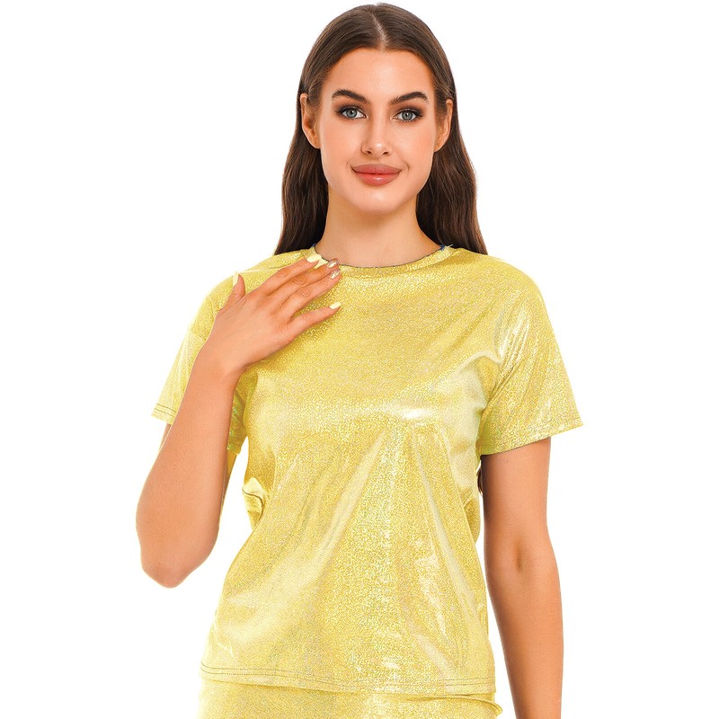 Short sleeve t-shirt for women, metallic shiny surface, makes you fashion and eye-catching in the crowd.