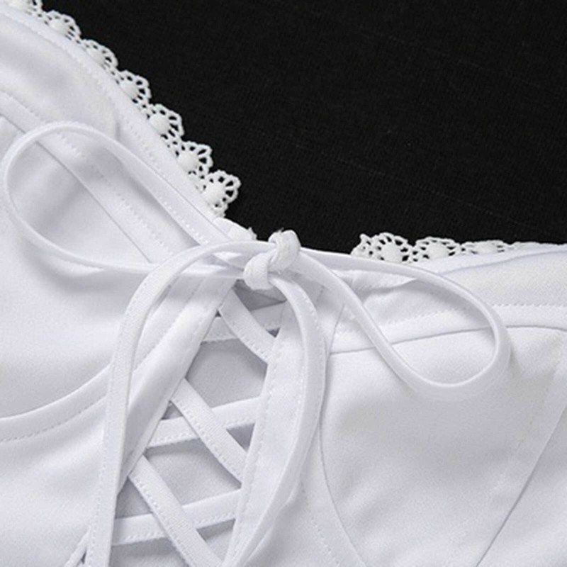 Women Lace-up Lace Trim Crop Top Adjustable Spaghetti Strap Tank Top Hollow Out Camisole.