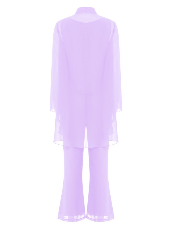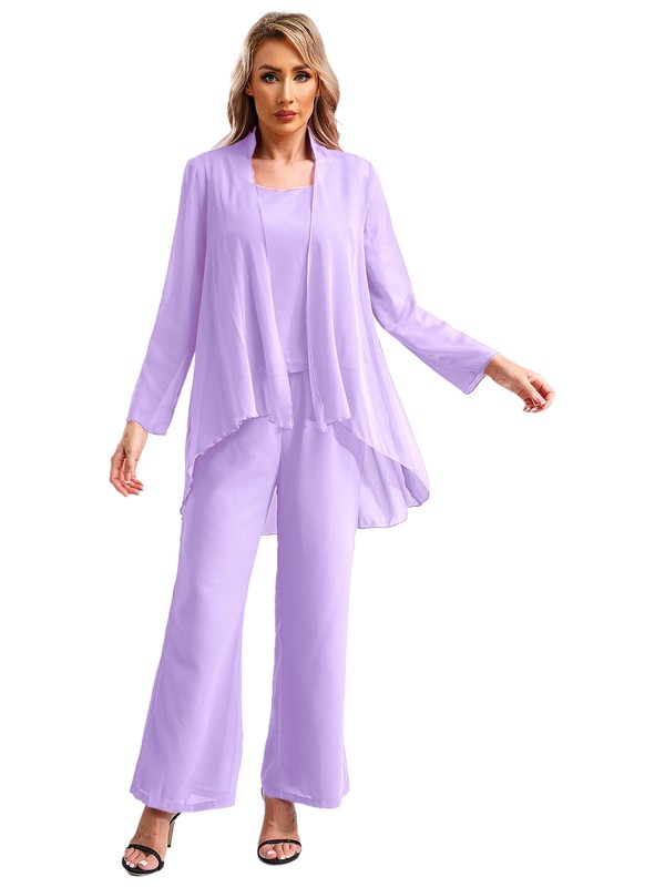 Women 3 Pieces Pantsuits Dressy Outfit Chiffon Vest with Cardigan and Pants Set