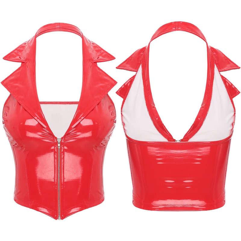 Womens Tank Vest Waistcoat Punk Crop Tops Patent Leather Raves Dance Clubwear