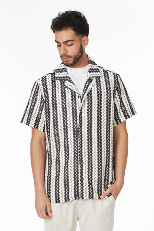 Hawks Bay Men's Black Stripe Crochet Textured Shirt