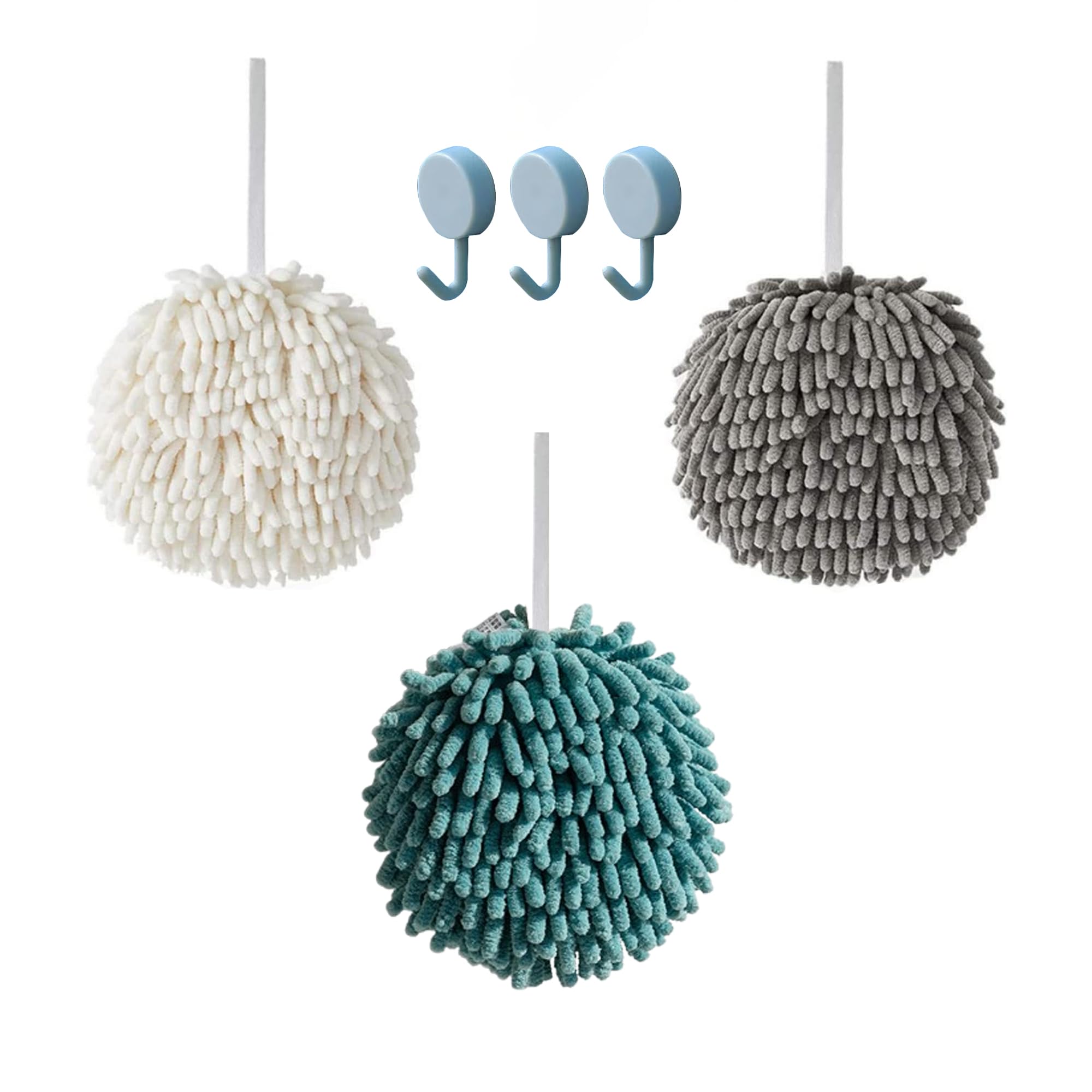 Elevate your hand-drying experience with our Chenille Ball Hand Towels Set of 3. Designed for both functionality and , these towels are made with ultra-soft chenille microfiber, offering exceptional absorbency and a quick-dry design that prevents unpleasant odors. Whether you need them for your bathroom, kitchen, or as a decorative touch, these versatile towels are up for the task. Each towel features a convenient wall hook attachment, making them easy to hang and always within reach. The set of three ensures you have plenty for all your drying needs, while their modern ball shape adds a unique aesthetic to your home. Upgrade your towel collection today with these soft, absorbent, and durable hand towels!