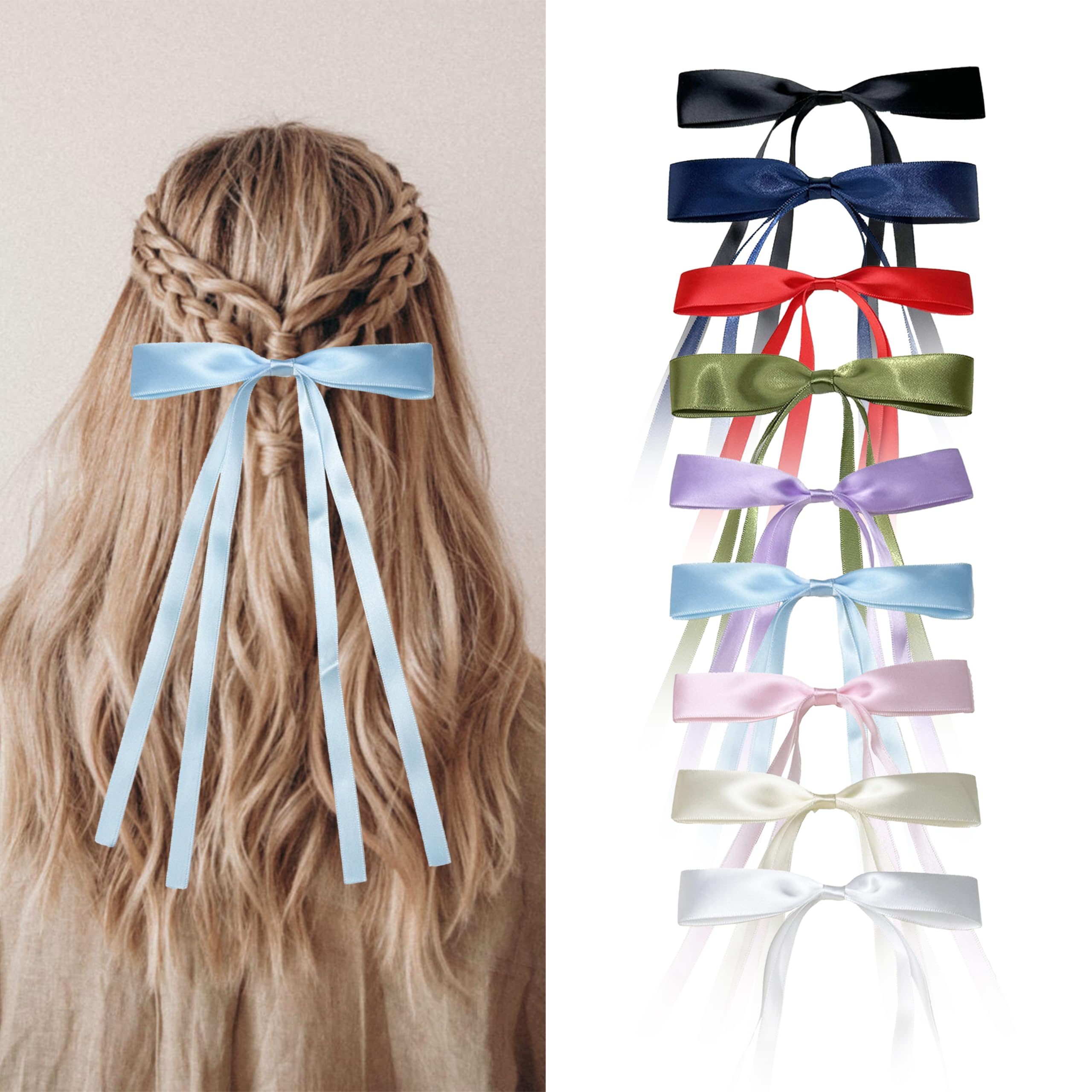 Ribbon Bowknot Hair Clips for Women with Long Tails, Solid Barrettes Claw Accessories.