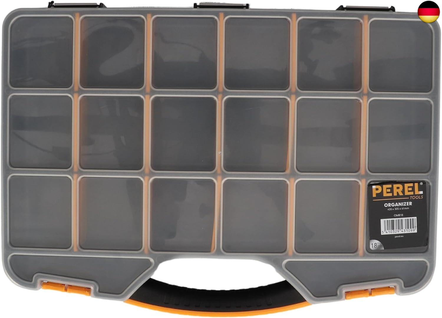 Perel Velleman OMR18 Sortimentskasten (L x B x H) 420 x 305 x 61mm Anzahl Faecher: 18 1St Schwarz, Orange