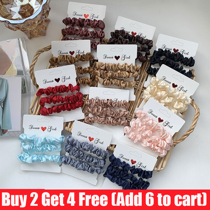 Satin solid color hair tie Japanese and Korean new spring and summer large intestine hair tie,the fabric material is satin,it feels comfortable.Rich colors.Suitable for a variety of outfits.