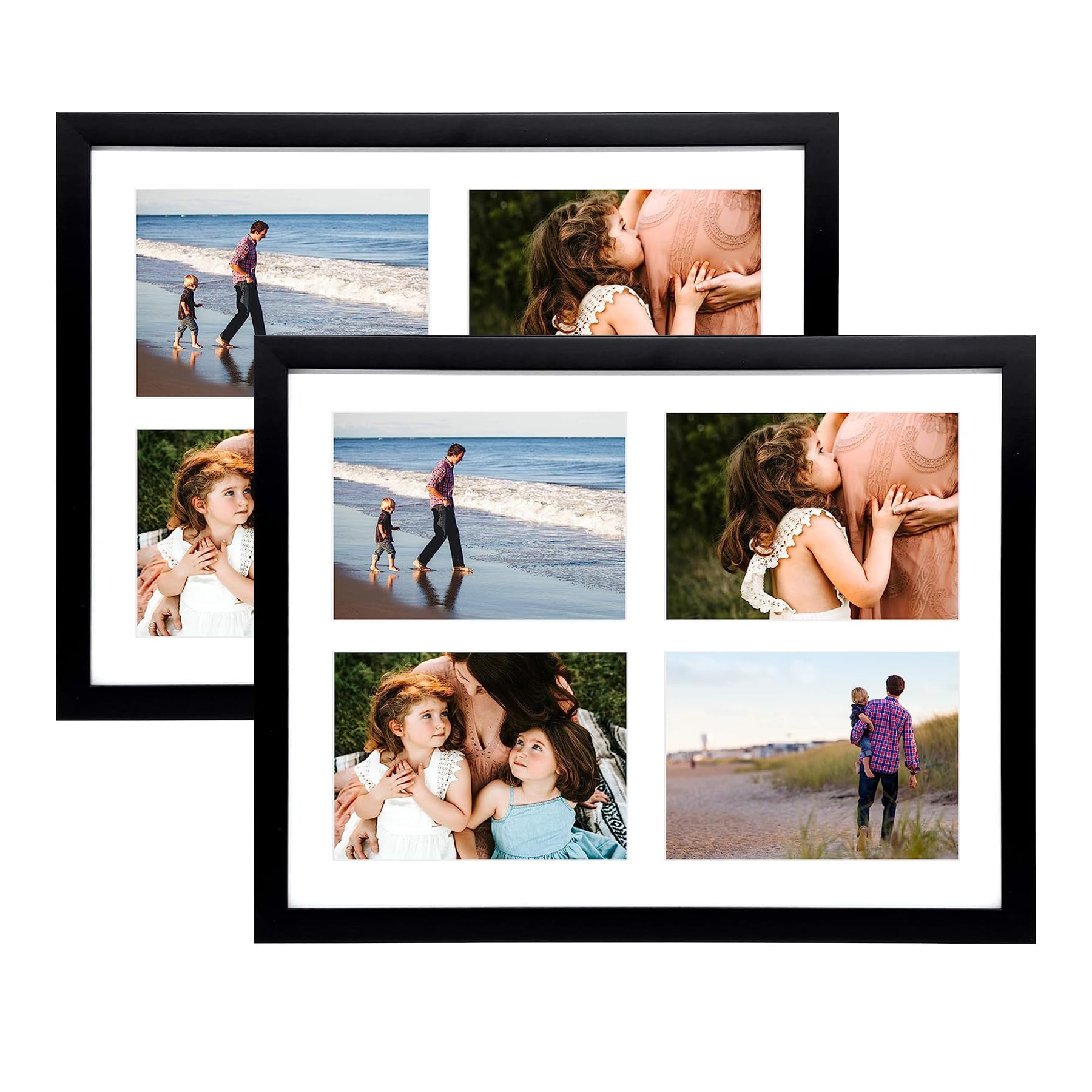 Collage Frame Features: Wood Molding, Templered Glass, Bevel Cut White Mat, Swivel Tabs, Saw Tooth Hangers For Wall Mounting, Landscape or Portrait Orientation
