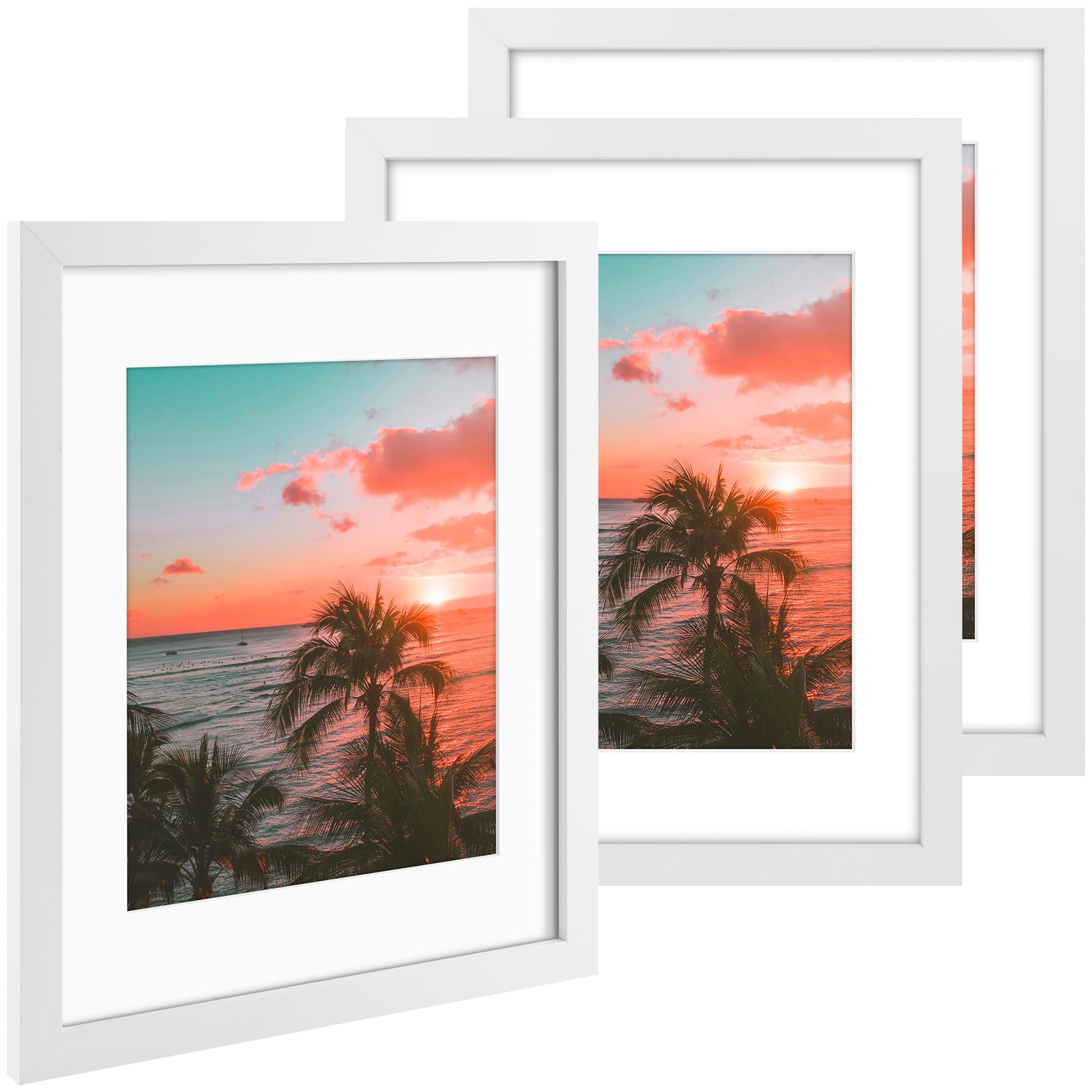 Size 6x8 frame opening 3.5 x 5.5 for 4x6 picture 8x10 frame opening 4.5 x 6.5 for 5x7 picture 9x12 frame opening 5.5 x 7.5 for 6x8 picture 11x14 frame opening 7.5 x 9.5 for 8x10 picture 16x20 frame opening 10.5 x 13.5 for 11x14 picture Mat Color: White Material: HD Plxeiglass + Composite wood Vertical or Horizontal Display If you have any quality-related issue, please be free to contact.