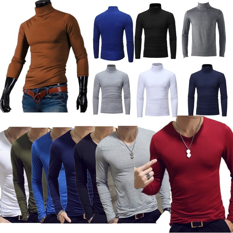 Men Casual High Neck Long Sleeve T-shirt Slim Fit Pullover Undershirt Thermal Base Shirt.