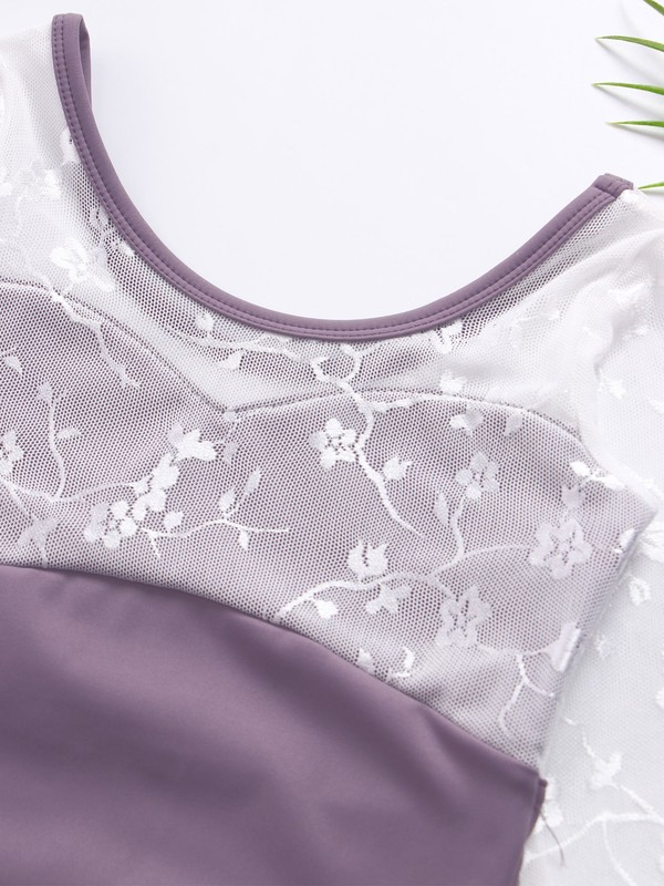 Long sleeve leotard for girls, sheer lace patchwork with floral pattern makes your child look cute and beautiful.