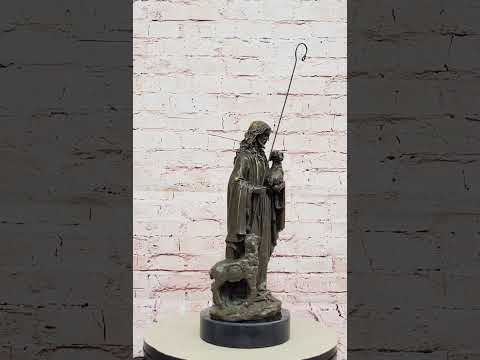 Handmade using the lost wax method, this hot-cast bronze figurine showcases a rich brown patina, highlighting the intricate details of Jesus’ flowing robes, serene facial expression, and the delicate texture of the lamb’s wool. Mounted on a round black marble base, this piece exudes both reverence and elegance, making it a perfect addition to any home, church, or spiritual space.