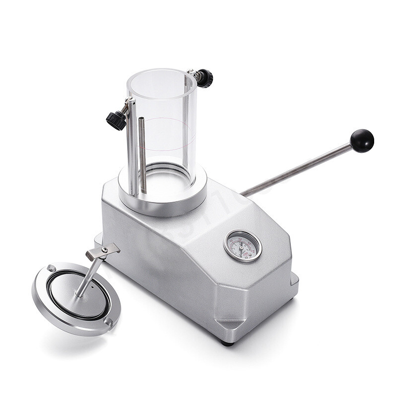 Watch Repair Tool Waterproof Detector Watch Water Tester Pressure Tester Specification: Material: Aluminum Size(LxWxH): 24.3X13X28.2CM / 9.57X5.12X11.10inch Rod Length: 28cm / 11.02inch Diameter: 7cm / 2.76inch Air Pressure: 6ATM (Maximum) Tips: 1. Pull the pocket watch Rod as far as possible 2. Loosen the two screws and take out the cover 3. Put in water, reach the designated red line of the bucket 4. the watch on the benchmark 5.Install the lid and tighten the screws 6. Shake the pressure lever to make the air pressure reach 3 air pressures (the official standard of Swiss watch industry), wait for three minutes to let the air enter the whole watch 7. Press the pocket watch rod to immerse the watch in water, press the exhaust button to let the air out 8. When the pressure drops, observe whether bubbles appear or not on the watch. If bubbles appear and the tightness of the watch is not good, pull the benchmark quickly and take out the watch. No bubbles appear, the watch has a good tightness Package Includes: 1 Set Watch Waterproof Tester Machine