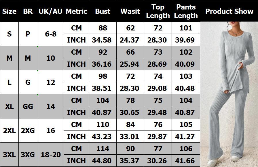 New Women's Loungewear Tracksuit Ribbed Knit Tops Pants Casual Co-ord Set Plus
