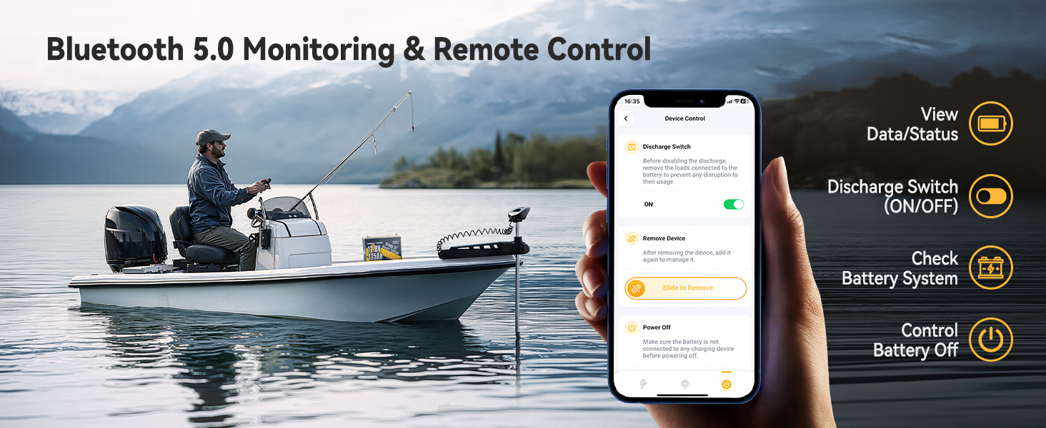 Bluetooth 5.0 Real-time Monitoring & Remote Control:Power Queen 12V 125Ah LiFePO4 battery integrates advanced Bluetooth 5.0 technology. Scan the QR code on the battery top, and you can view battery data and status in real time via the Bluetooth app, including SOC, voltage, current, power, temperature, low-battery reminder, charge/discharge status, protection status, etc. No more guessing games, eliminating your power anxiety! You can also remotely control battery discharge and power off via Bluetooth (within 10 meters), putting control at your fingertips for ultimate convenience.