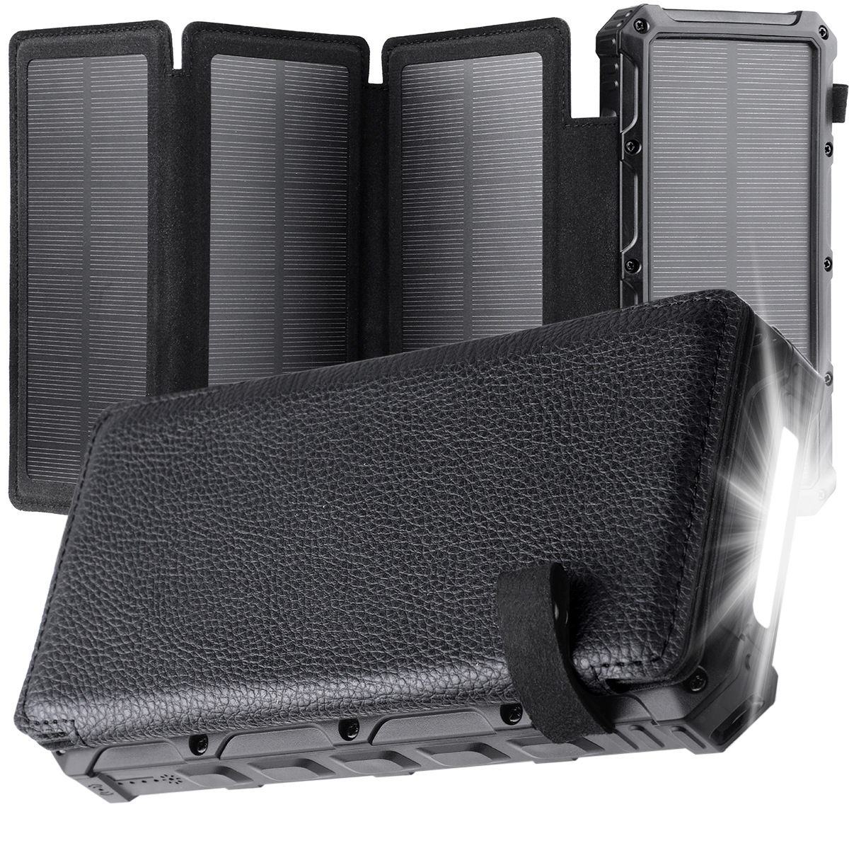 [Super Large Capacity] With 36000mAh premium Li-polymer battery, this solar power bank can charge your devices multiple times. It can be recharged via adapter and solar power, free your worries of poweroff. Equipped with smart protection IC chip, it guarantees charging safety intelligently.