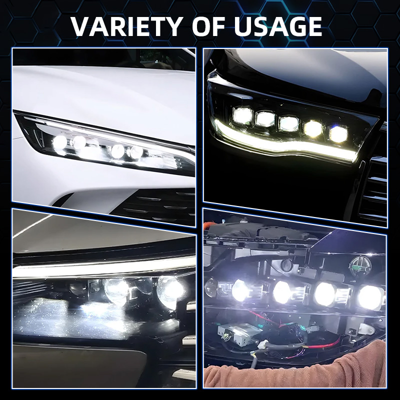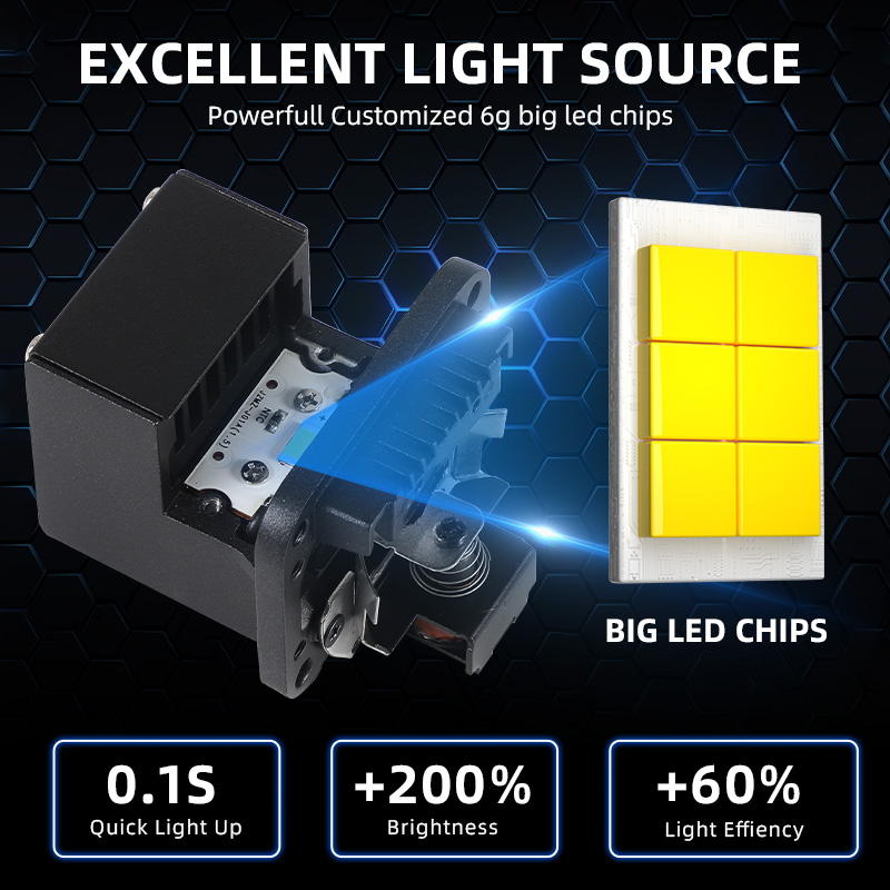1. Equipped with 6 high-brightness LED chips, emits a stronger light output that illuminates the road much further than ordinary halogen headlights.