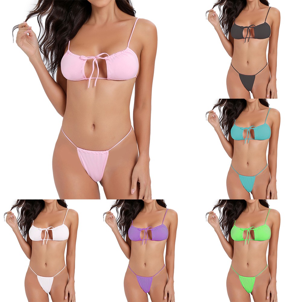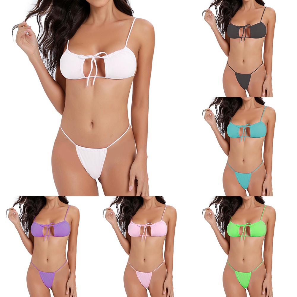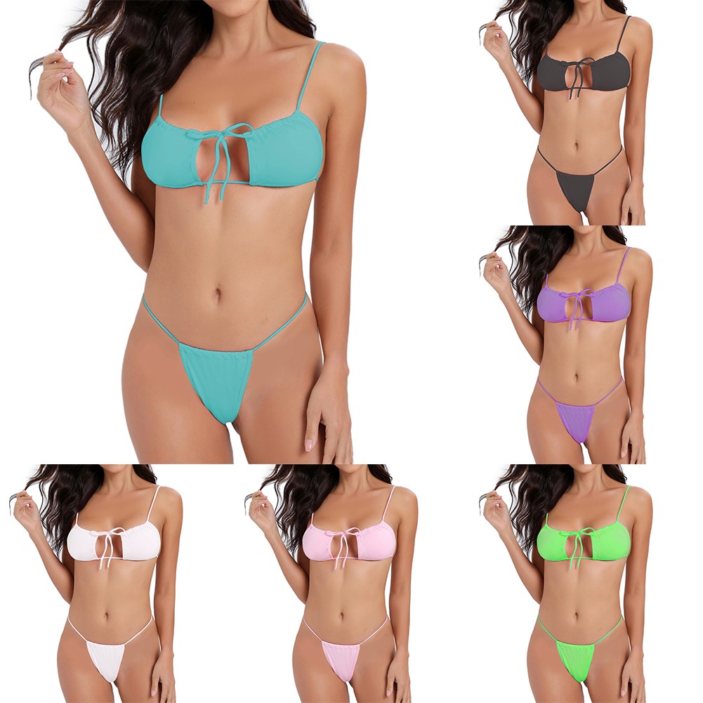 * Artikelbeschreibung: Damen, Zweiteiler, Bikini, Badeanzug, KordelzügeTring, Sexy, Einfarbig, Schlitz, Badehoser, Rückenfrei, Kein Brustkissen