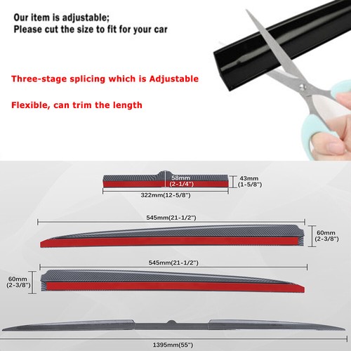[ Adjustable Design ] --- With a total length of about 54 inches, with three stage splicing, adjustable and flexible, Adjustment range (117cm-138cm),can trim the length or bent freely to fit different size cars or different shapes of trunk rear roof spoiler. Three-stage splicing which is Adjustable & Flexible, can trim the length or bent freely to fit different size cars or different shapes of trunk rear roof spoilers for cars