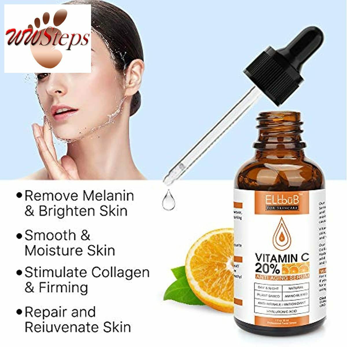 Vitamin C (Ascorbic Acid) helps your skin to replace old, dead cells with new, fresh ones. Within ELBBUB's best Vitamin C Serum, many super powerful & potent ingredients work together to bring to life a totally youthful combination for your face & body.