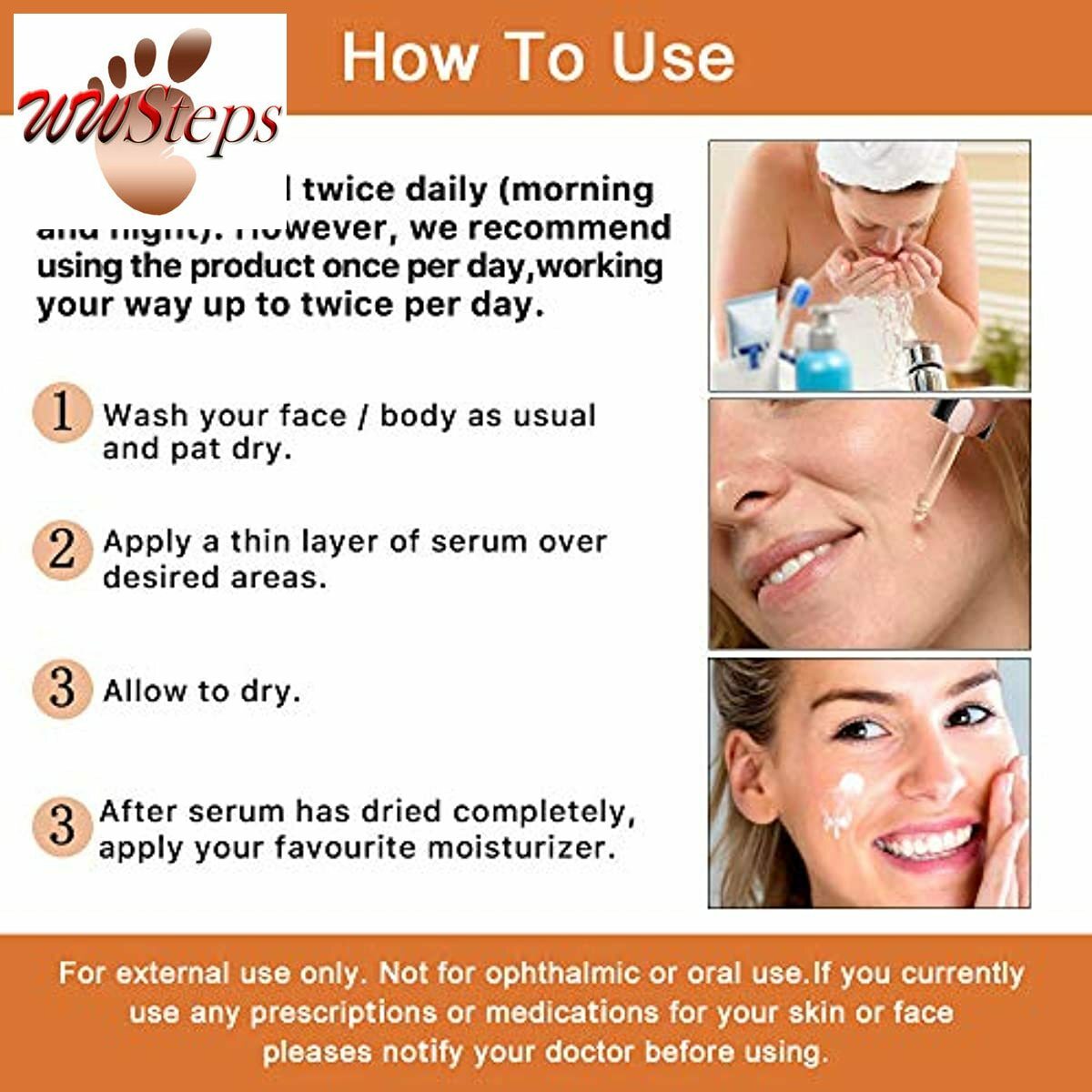 For external use only. Not for ophthalmic or oral use. If you currently use any prescriptions or medications for your skin or face please notify your doctor before using.