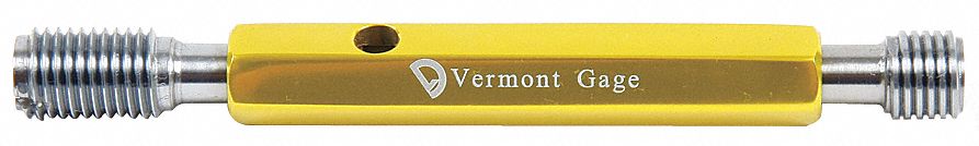 Threaded Plug Gauge Assembly, Dimension Type Metric, Gauge Type Go/No-Go (Plus/Minus), Handle Design Double End, Included Handle Taperlock 1, Thread Class 6H, Thread Size M8 x 1.25, Thread Type Metric, Tolerance Class X, Gauge Finish Chrome Plated, Gauge Length - Go Member 12.70 mm, Gauge Length - No-Go Member 7.90 mm, Gauge Material Tool Steel, Handle Color Yellow, Handle Length 3 in, Hardness RC 70-72, Included Certification Certificate of Accuracy with NIST Traceability Go/No Go Thread Plug Gage Assemblies � Go/No Go taperlock Class X thread gage tolerance Tool steel constructionClass 2B plug gage assemblies are used to inspect internally threaded parts, and to verify min./max. pitch dia. limits. Class 2A set plug assemblies are used to verify and set adjustable threaded ring gages.
