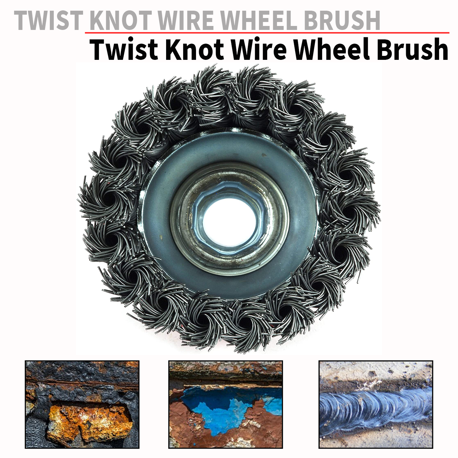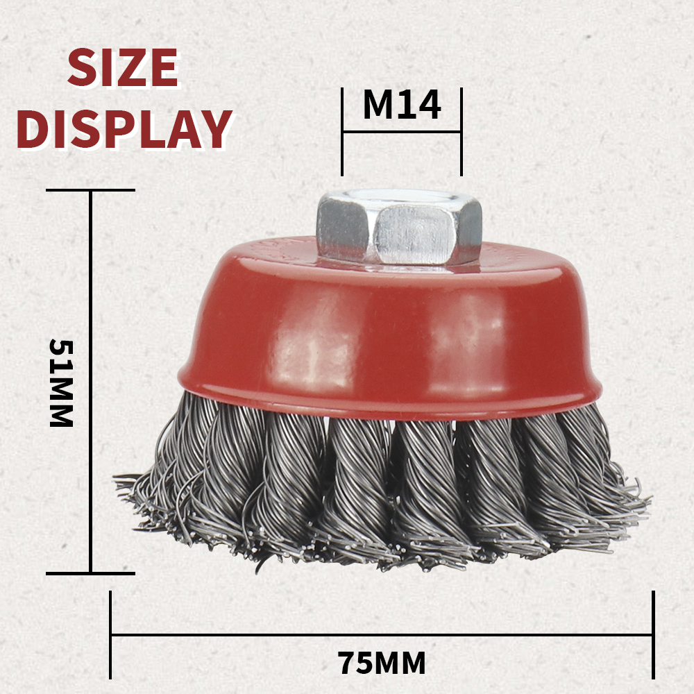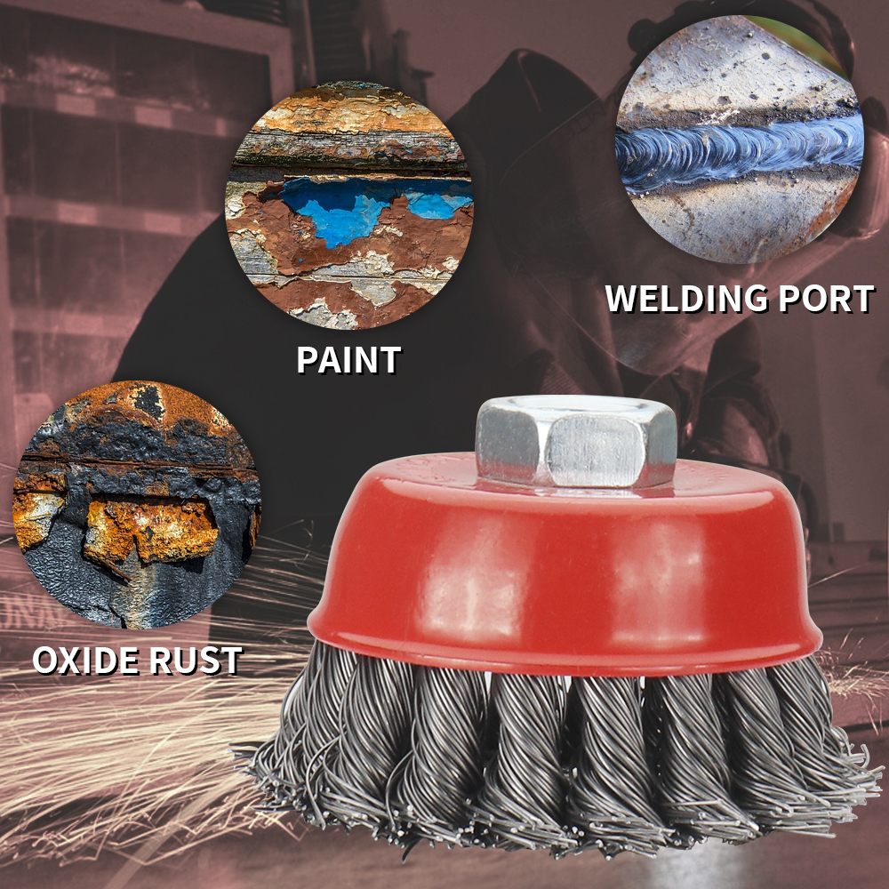The knotted wire wheel and cup brushes twist the steel wires together for increased resistance to pressure and durability. Hardened steel wire for reduced wire breakage & long life.