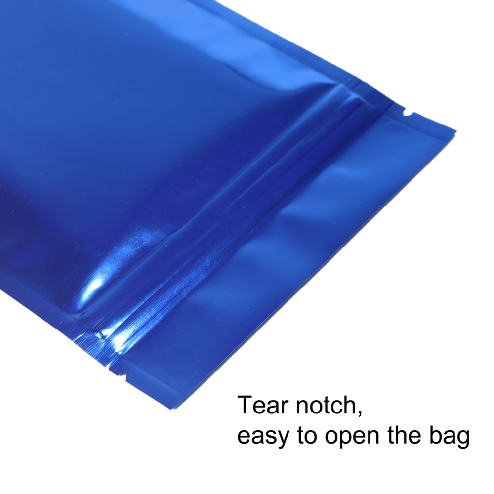 Zipper Bags are great for storage and packaging of your products and favorite items. Contents can be anything from jewelry to non-perishable foods. The bags protect the contents from UV damage, debris, and more! For extended storage, you can heat seal the bag! The tear notches enable access even after heat sealing. The mylar material provides a lightweight, durable and flexible packing solution!