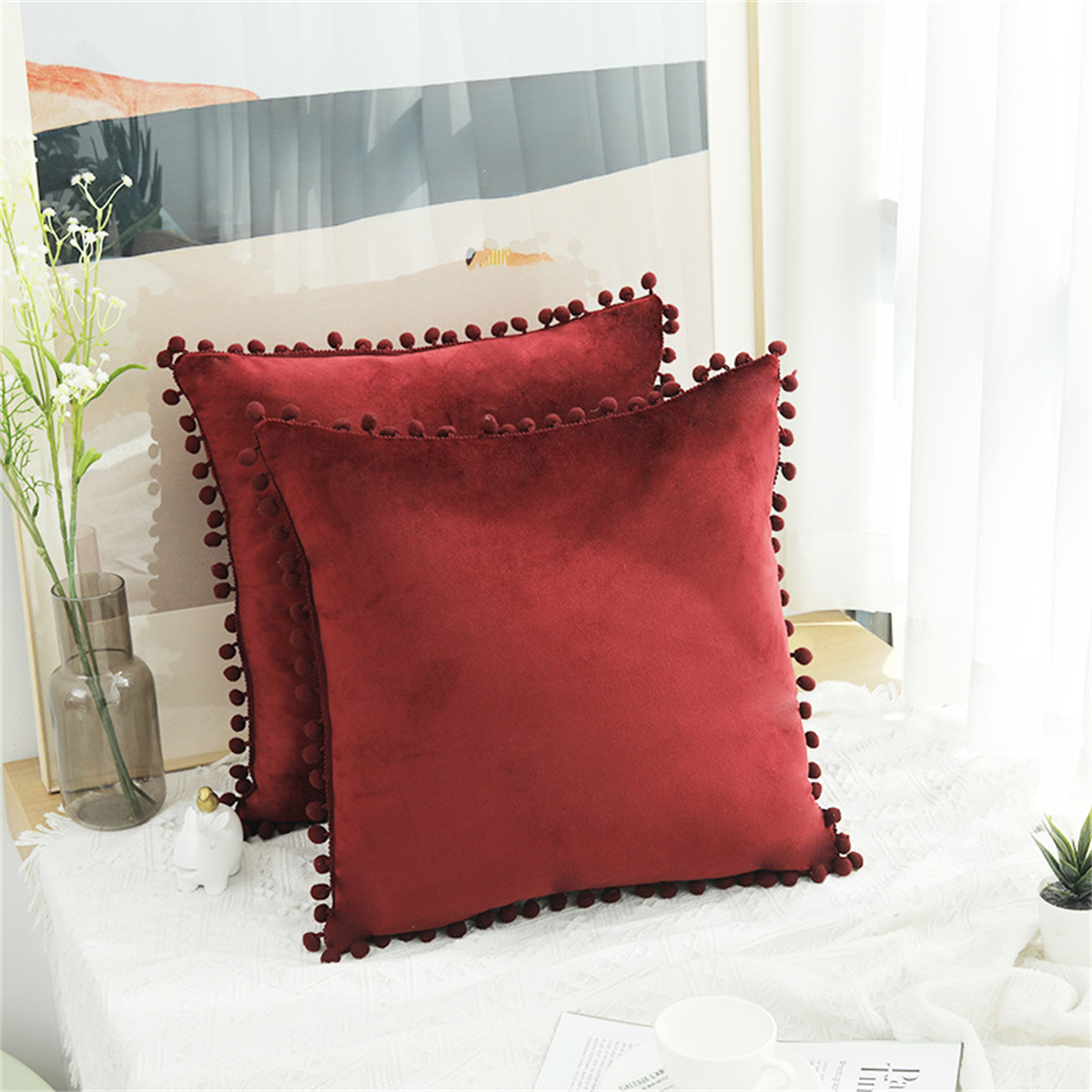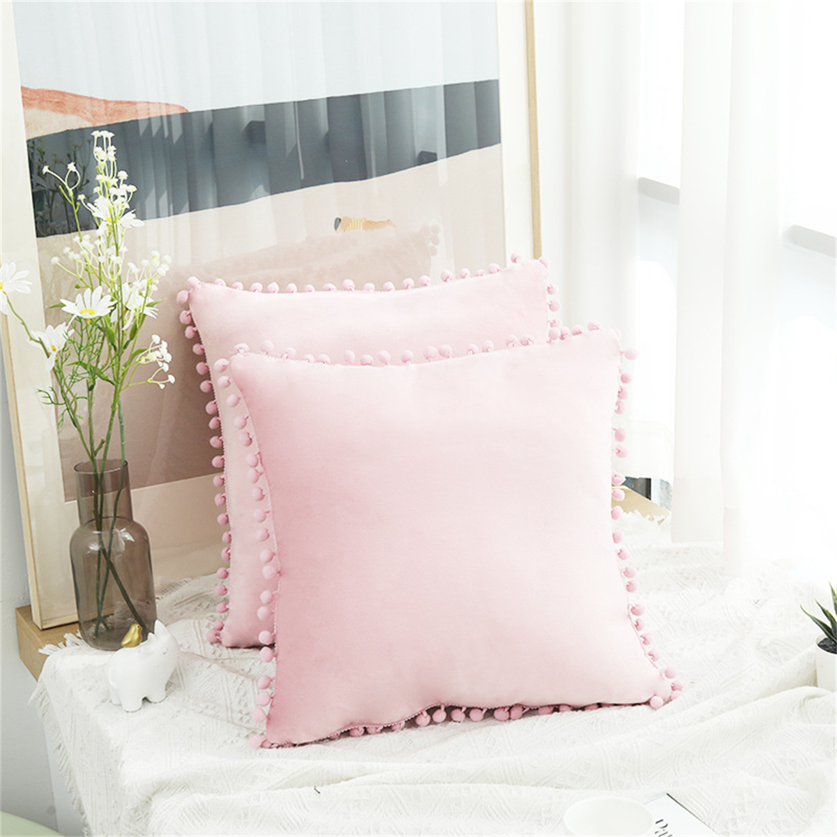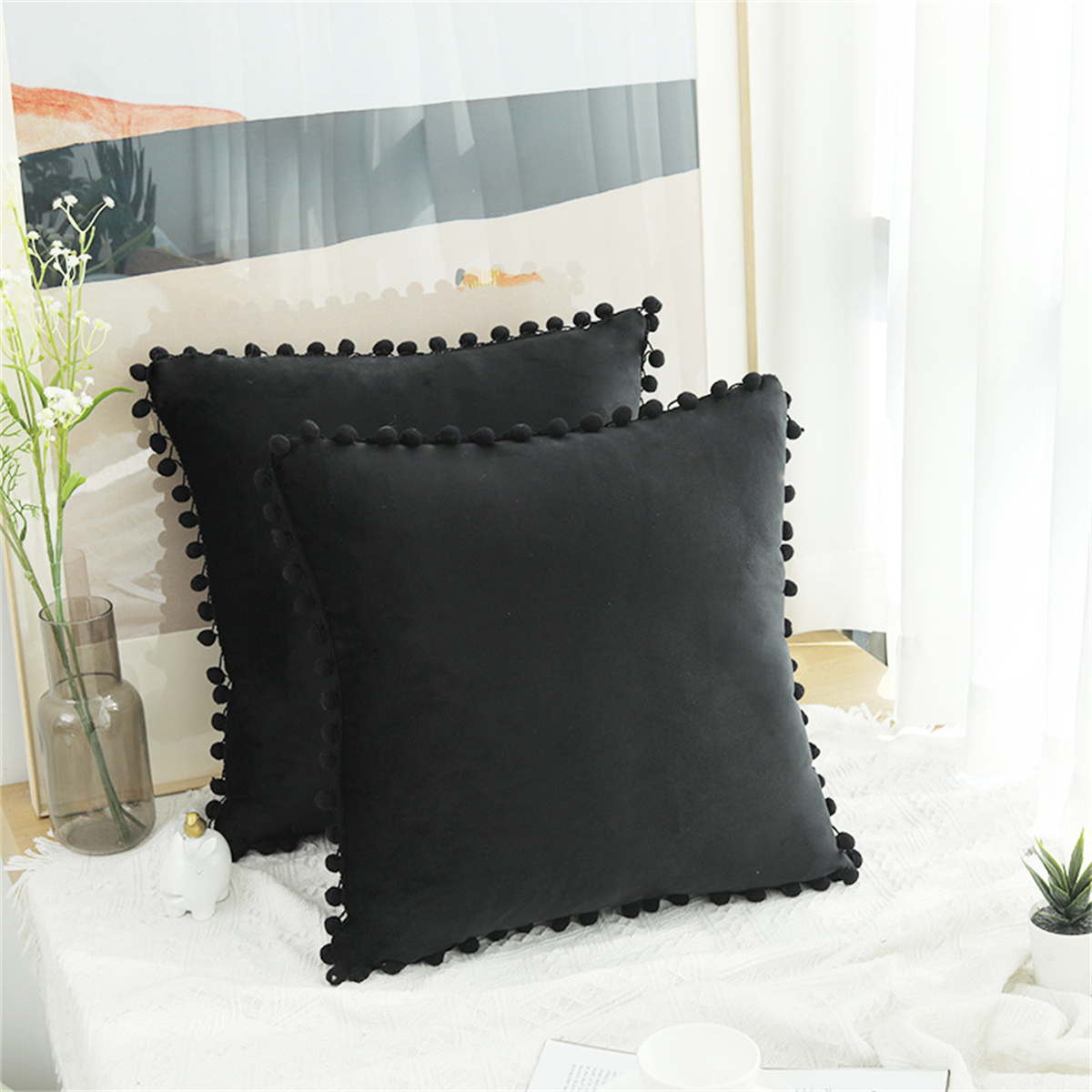 Creative Solid Color Pom-pom Cushion Cover Home Decor Sofa Velvet Pillowcase