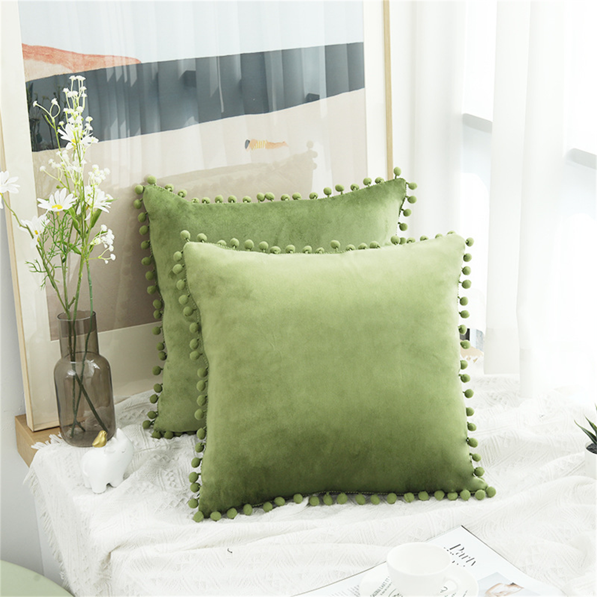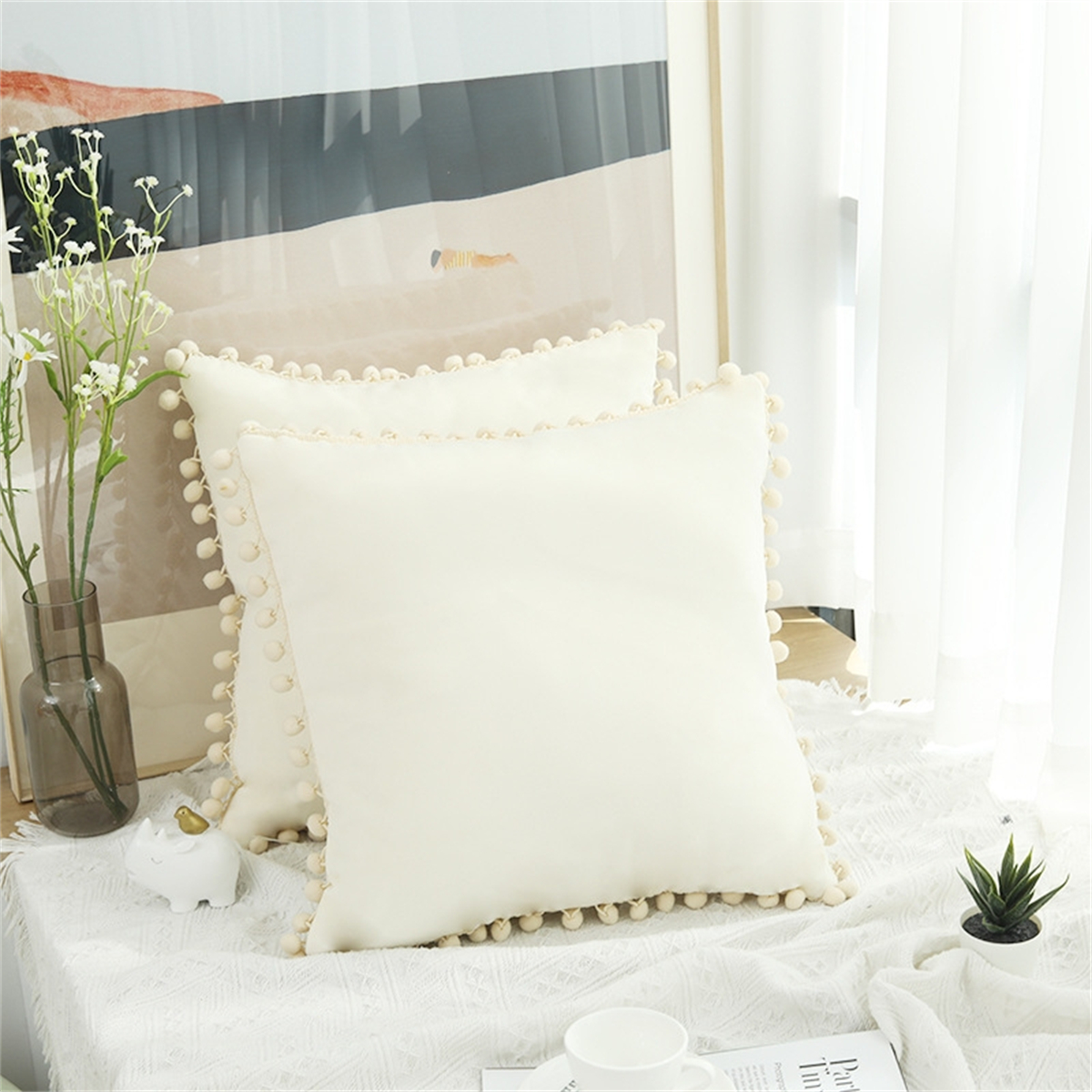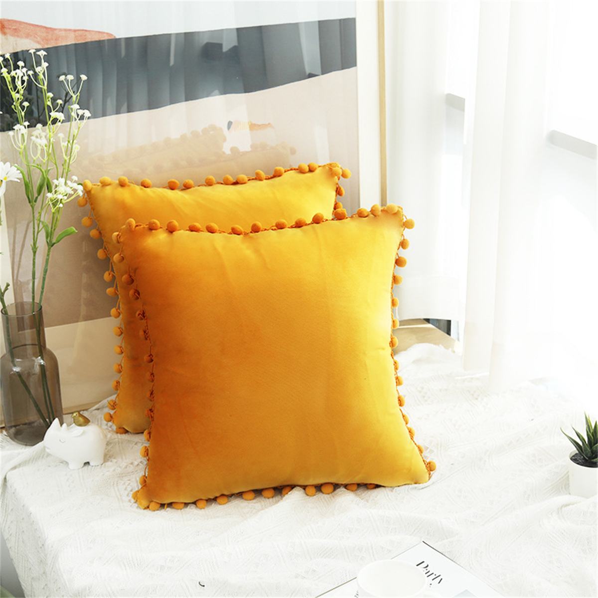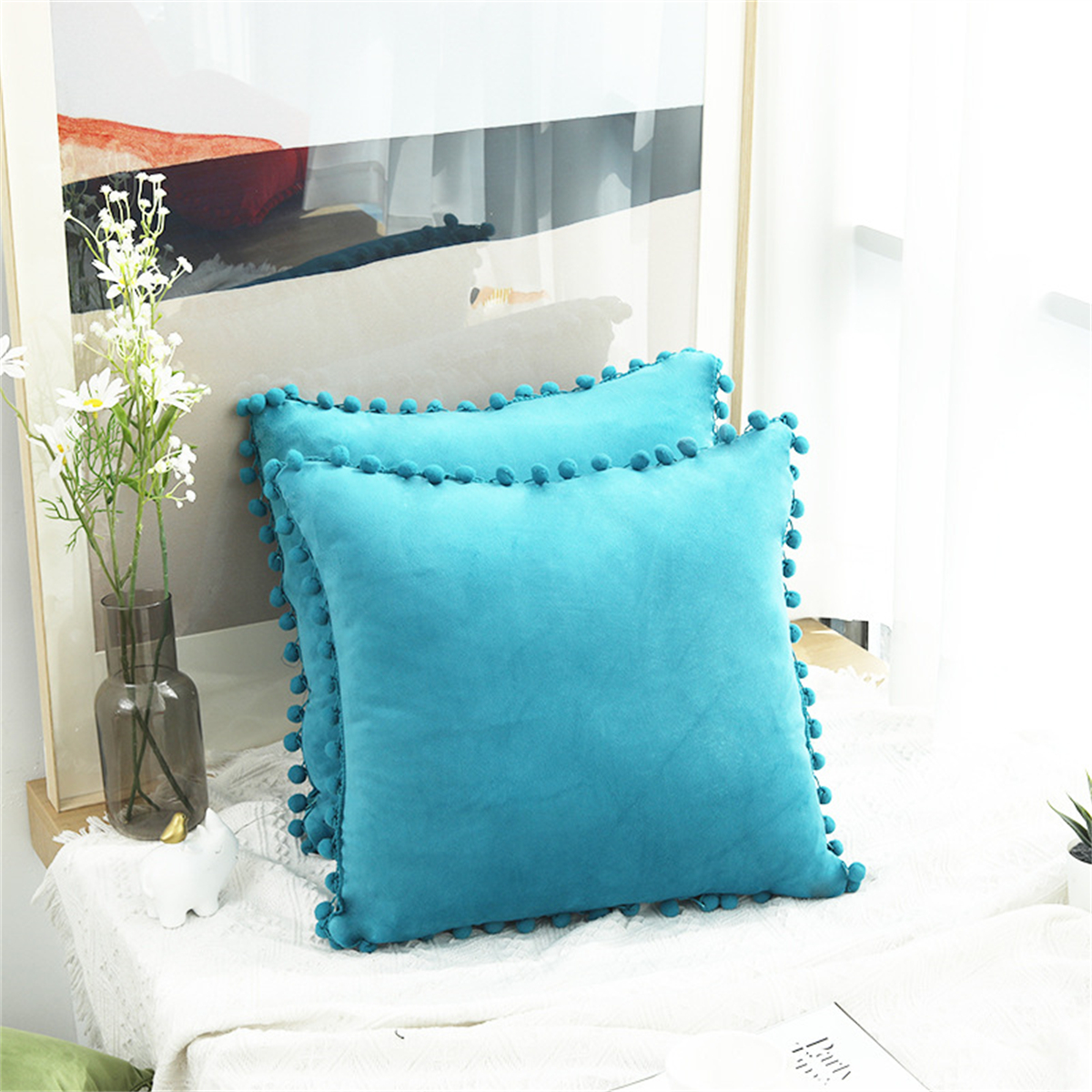 Creative Solid Color Pom-pom Cushion Cover Home Decor Sofa Velvet Pillowcase