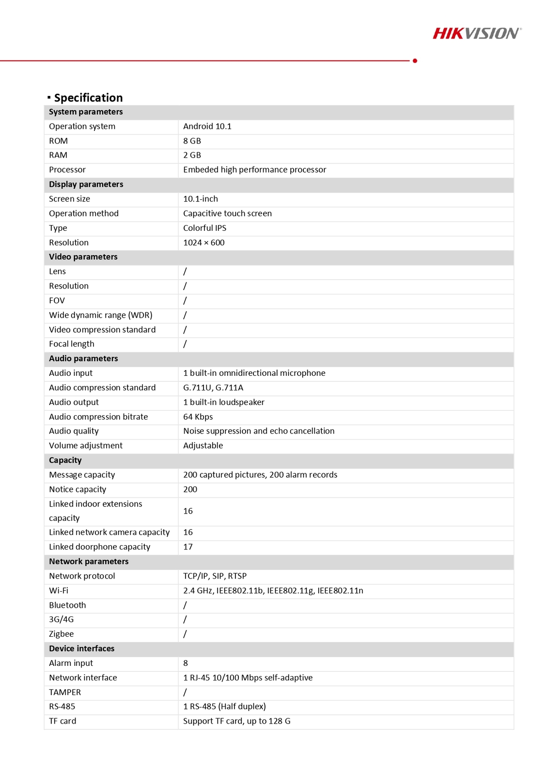- Network ProtocolTCP/IP, SIP, RTSP